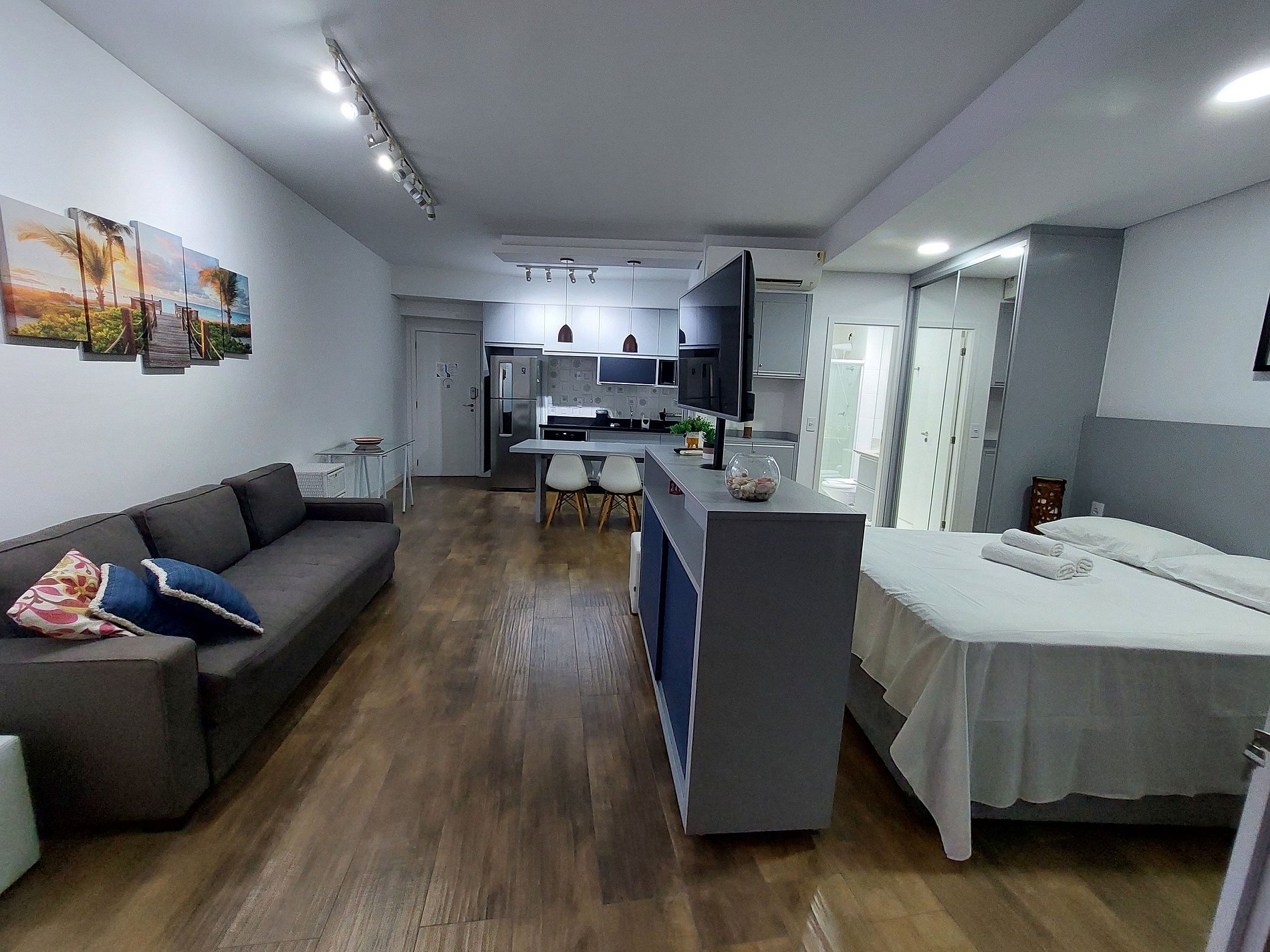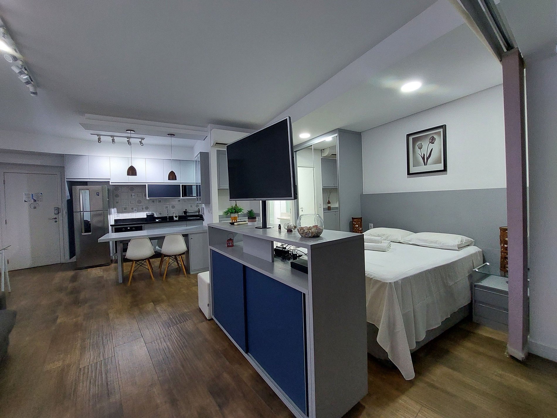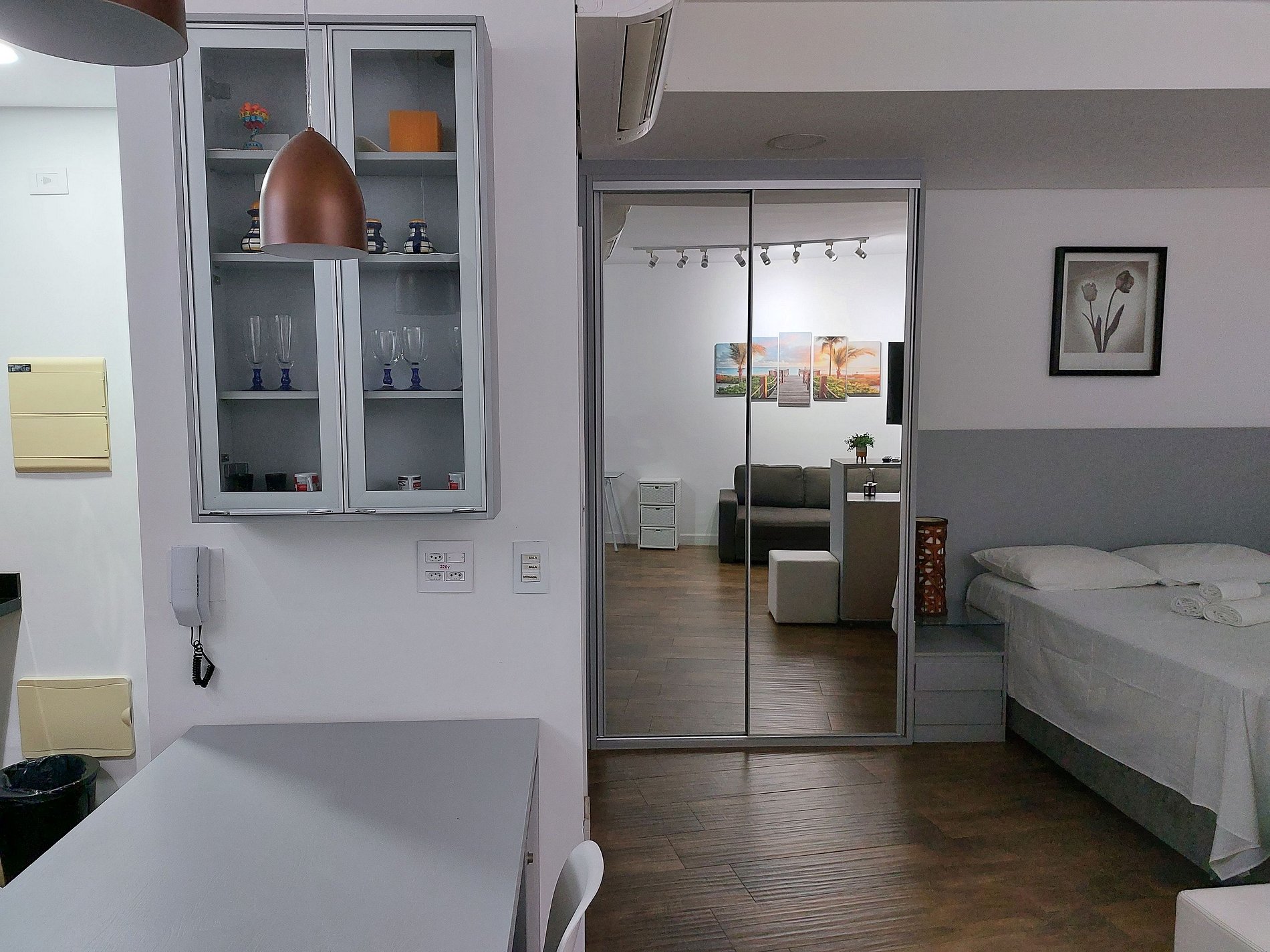 O apartamento possui sistema inteligente de gerenciamento energia, onde ao sair do apartamento é necessário retirar o cartão economizador, a energia desligará automaticamente, exceto geladeira e internet. Em caso de hospedagens com cães, não é possível manter a energia ligada caso o cão fique sozinho no apartamento