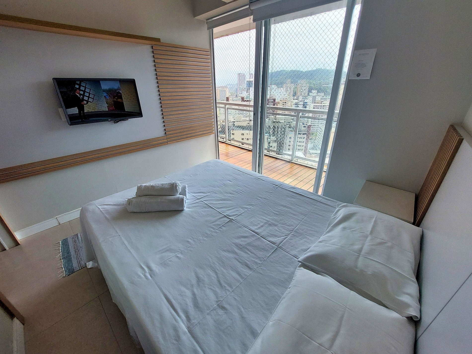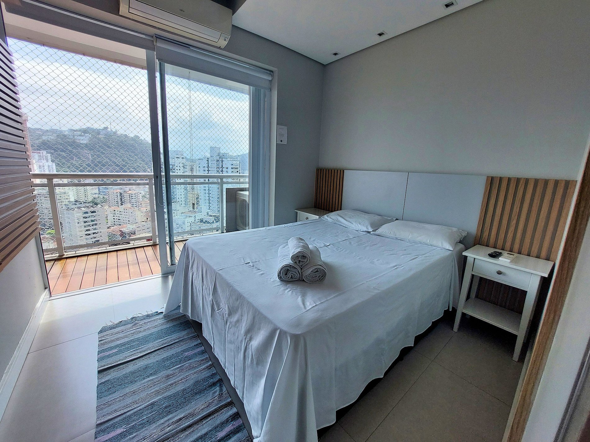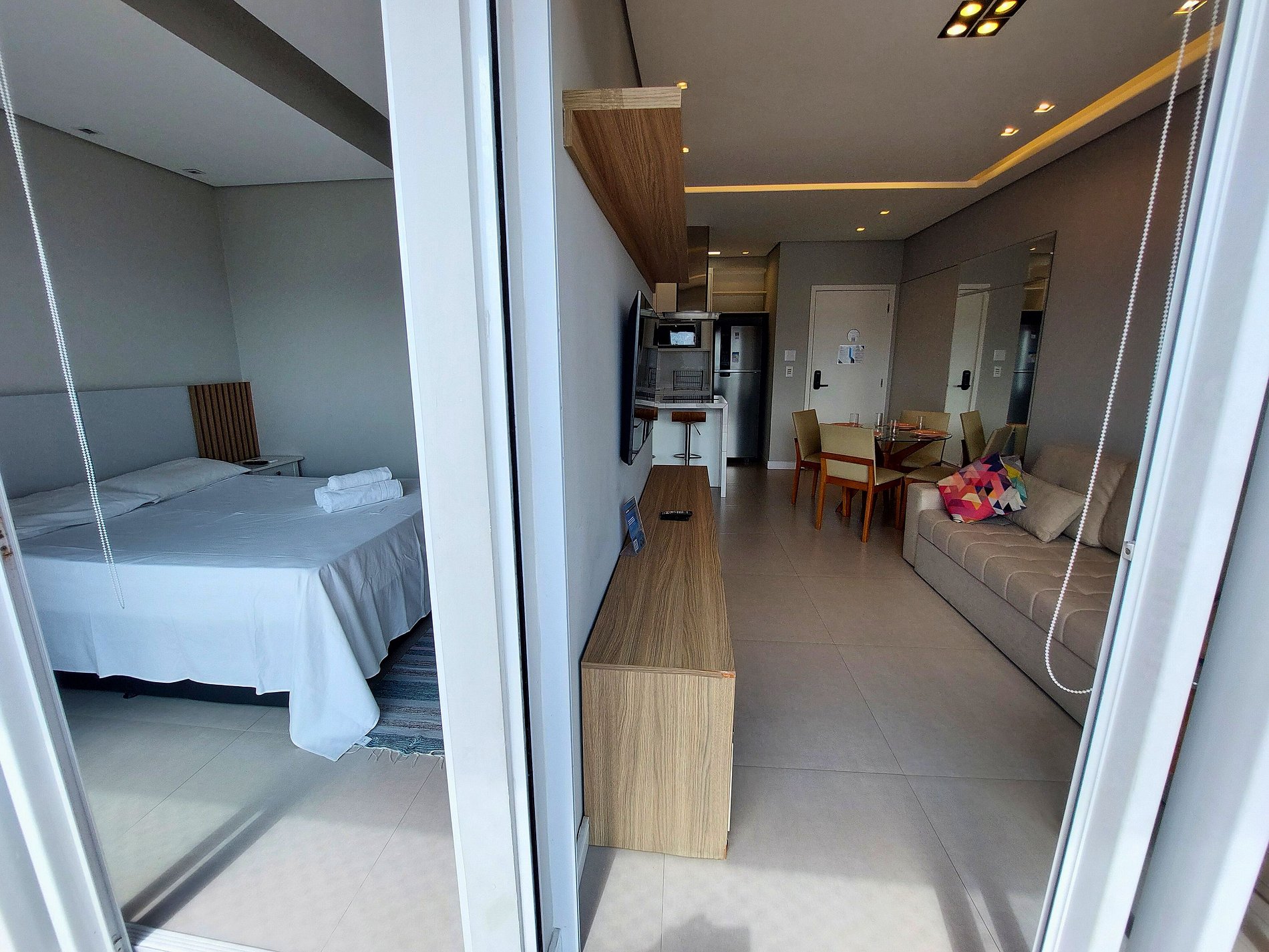 Desfrute de uma estadia em frente a praia no estúdio 2111, com 48m² no 21º andar com vista para o mar e piscina, em Santos!