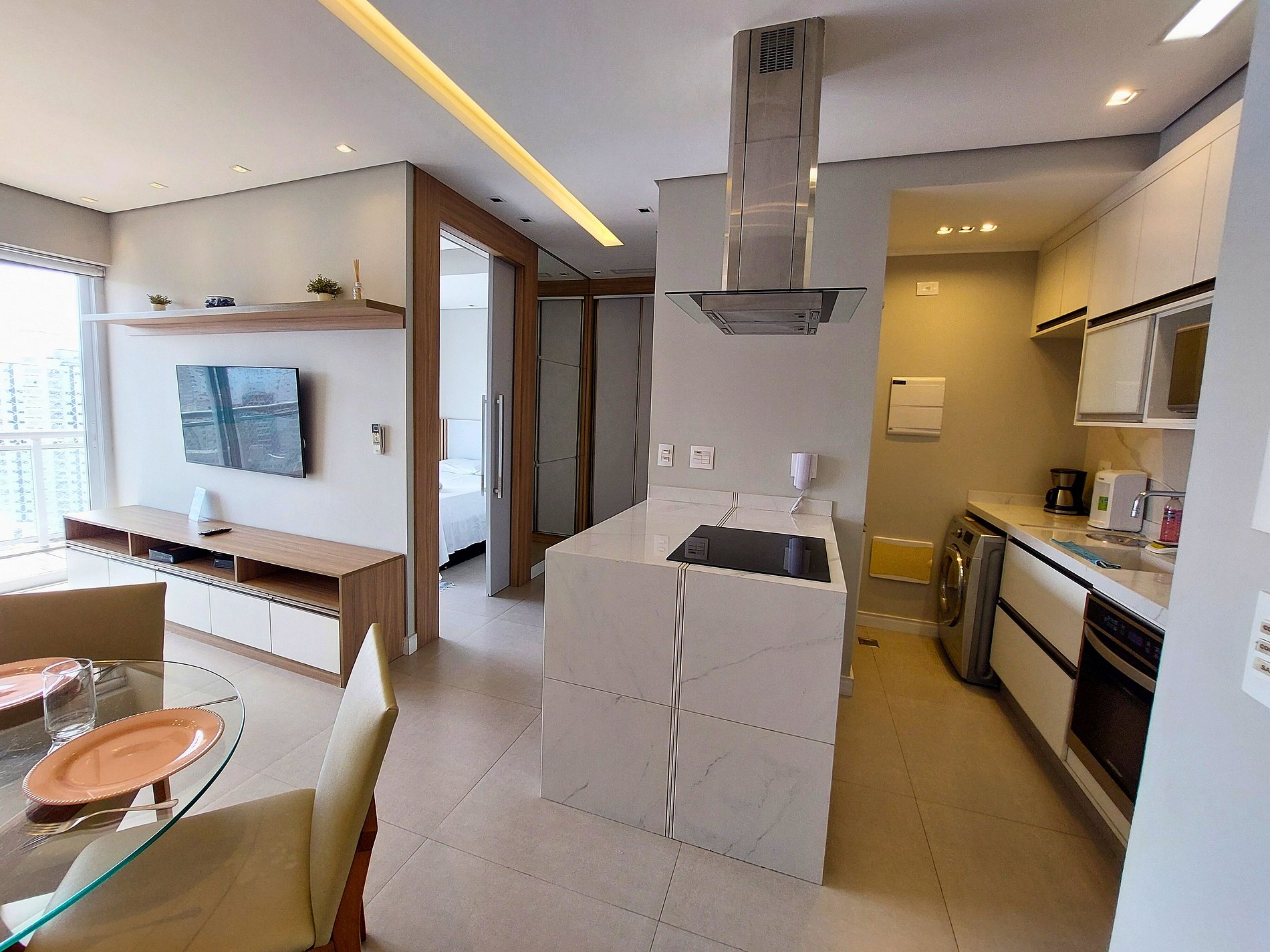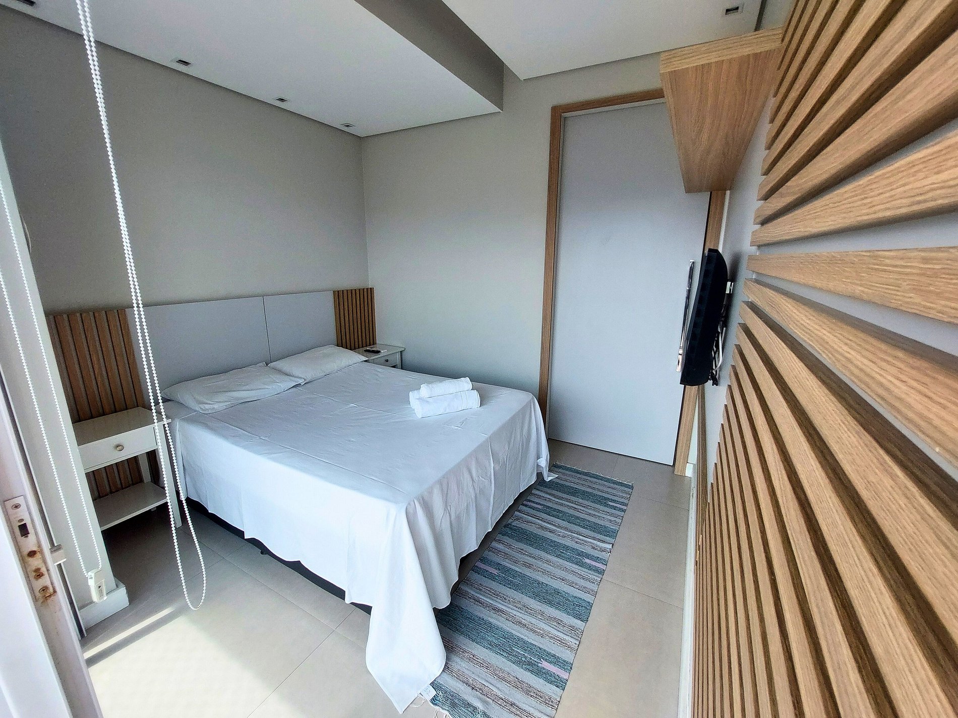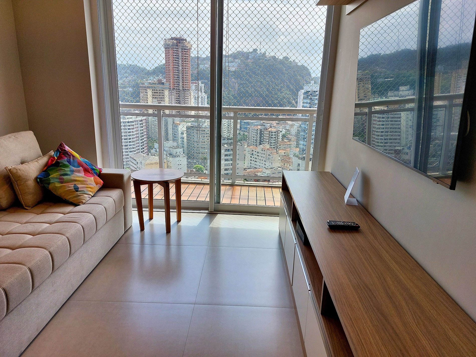 Desfrute de uma estadia em frente a praia no estúdio 2111, com 48m² no 21º andar com vista para o mar e piscina, em Santos!