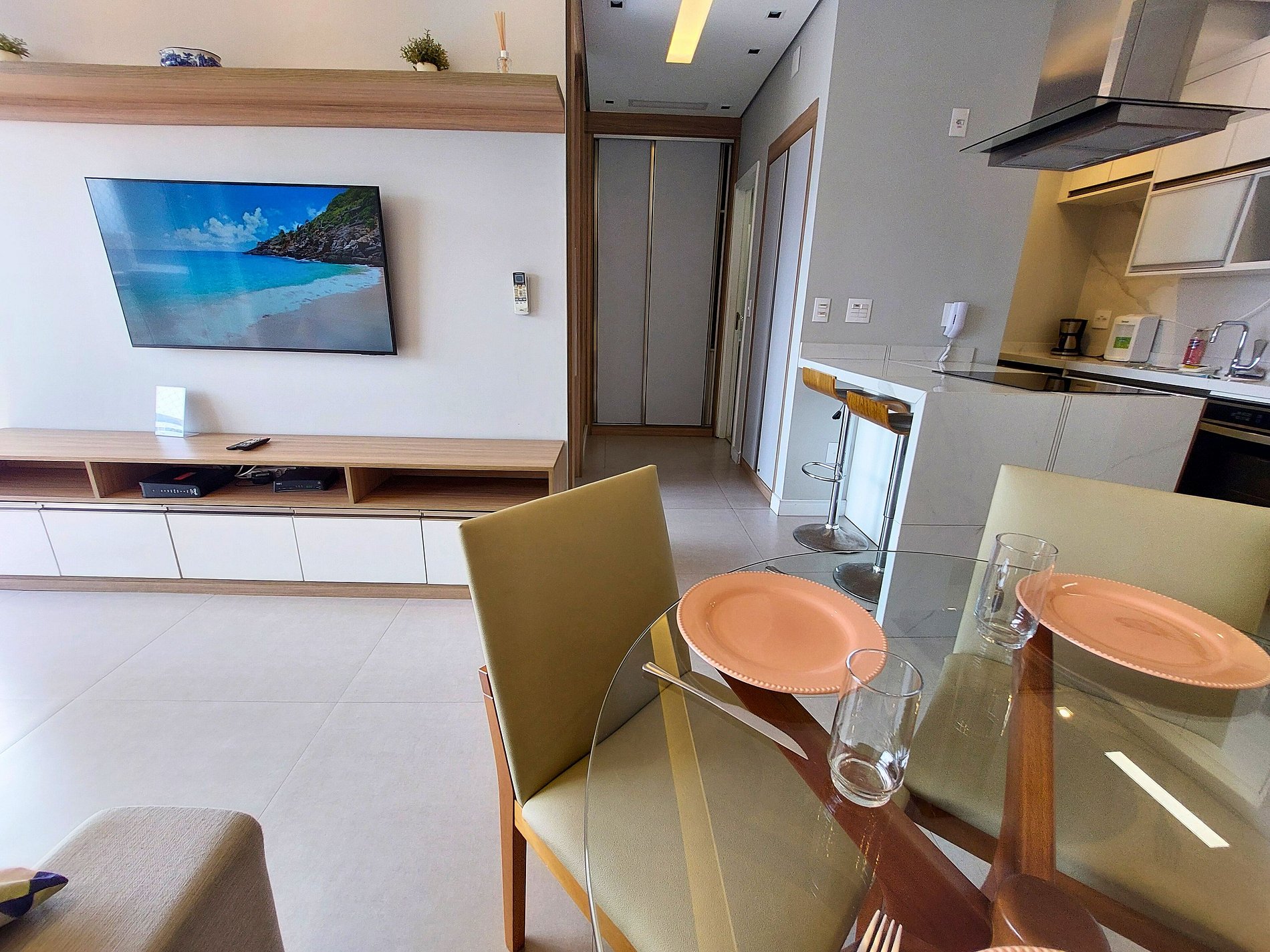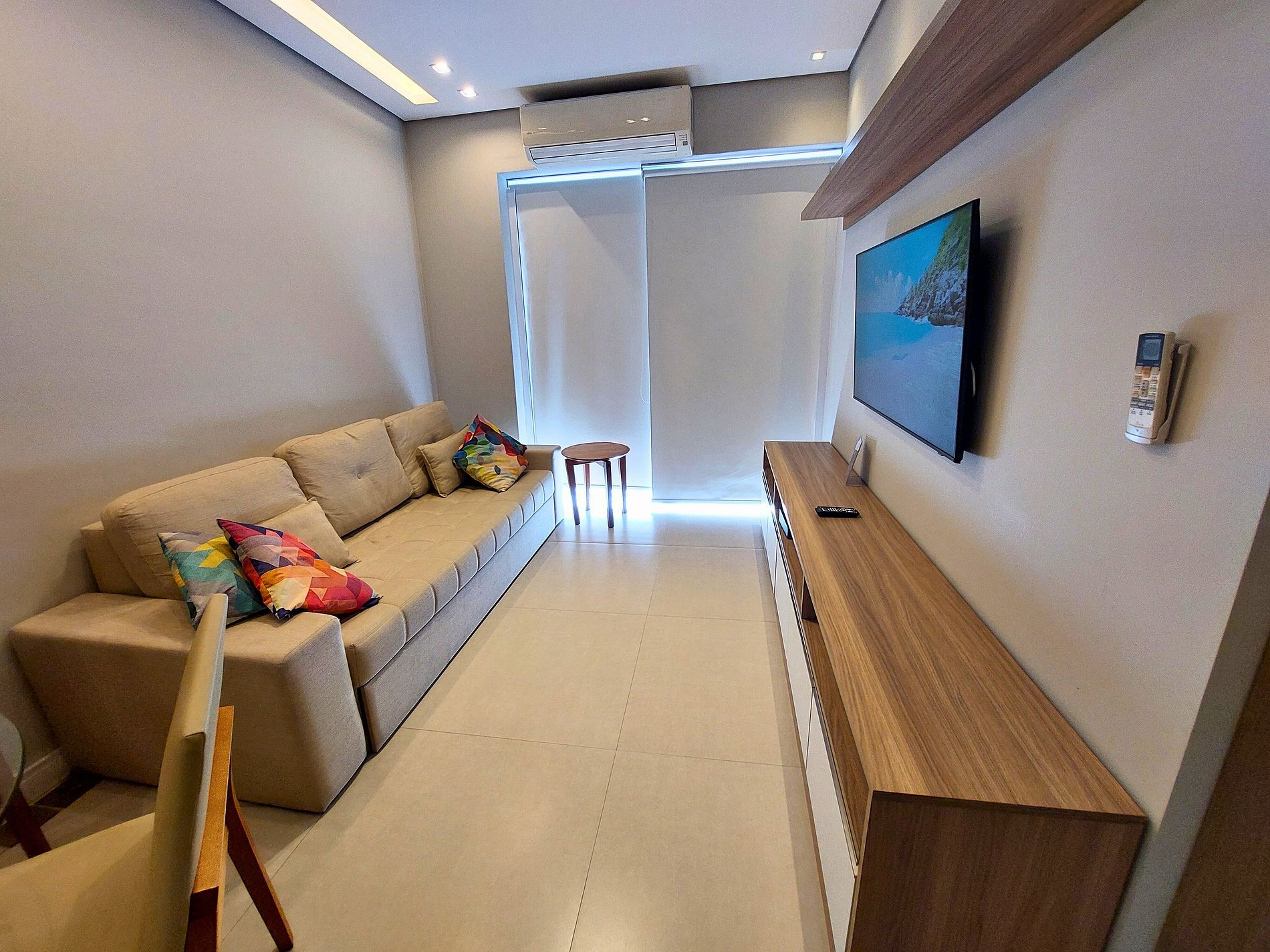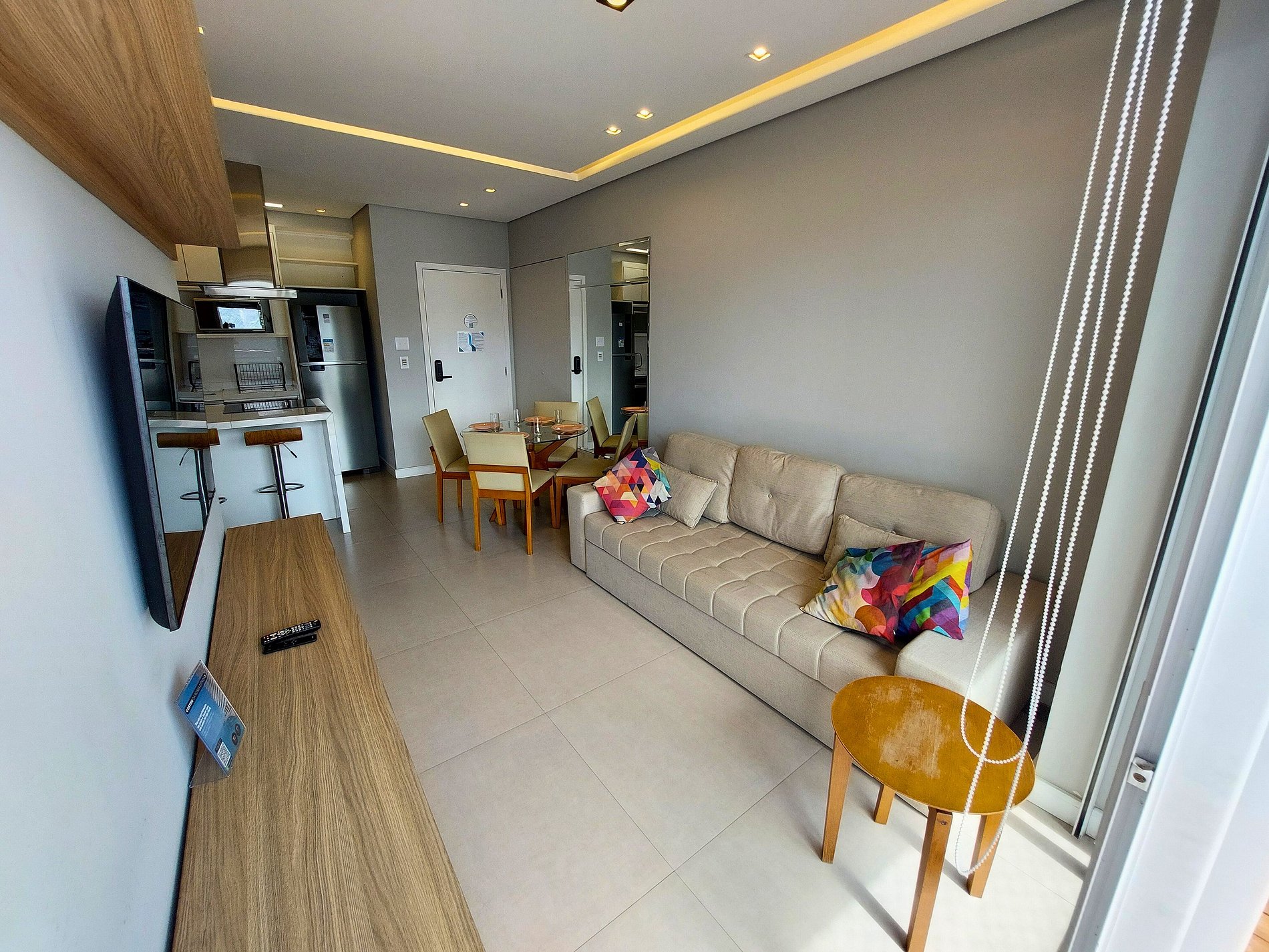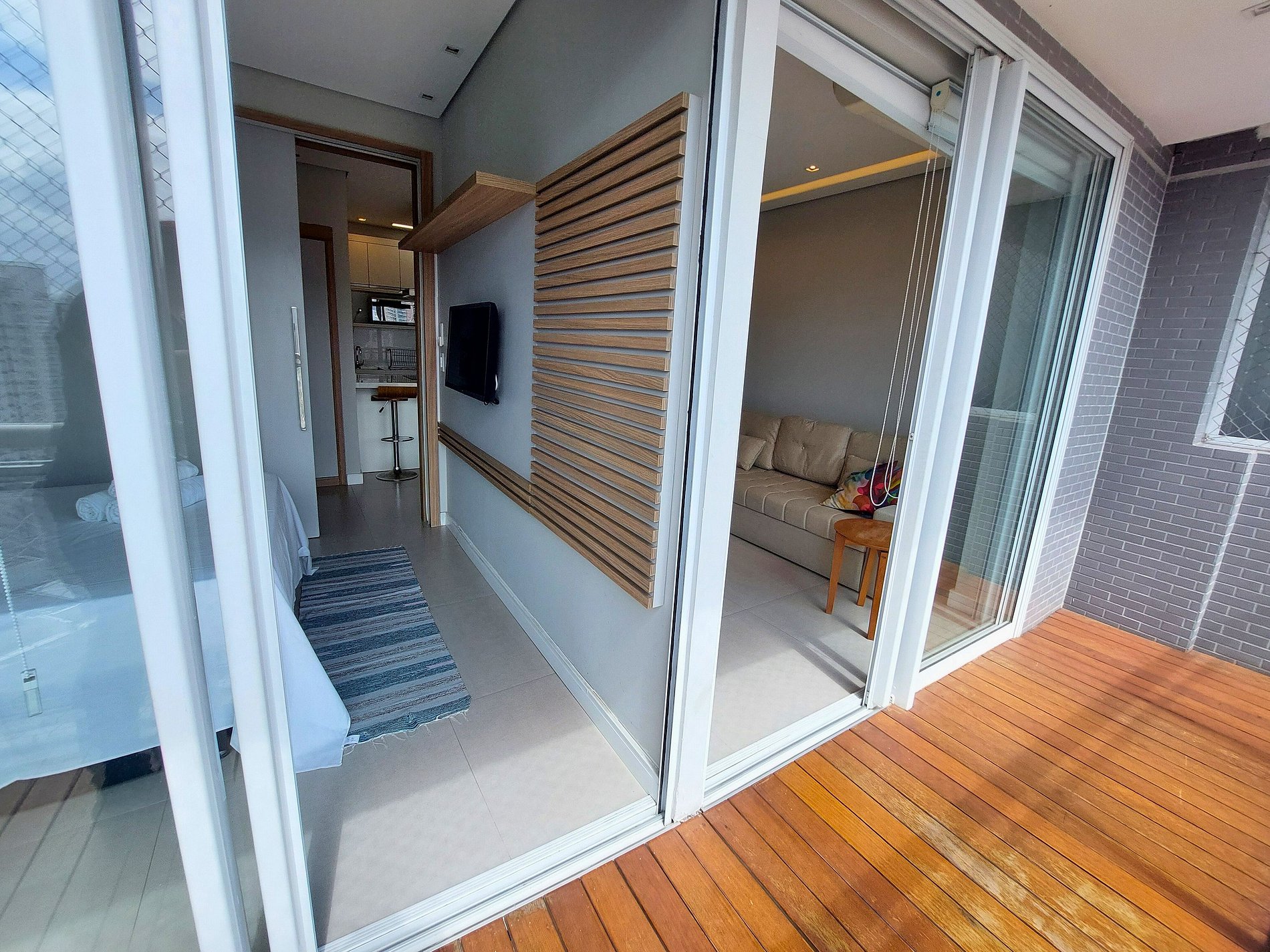 • Possui sacada telada com linda vista para o mar e o Emissário — perfeita para quem viaja com crianças.