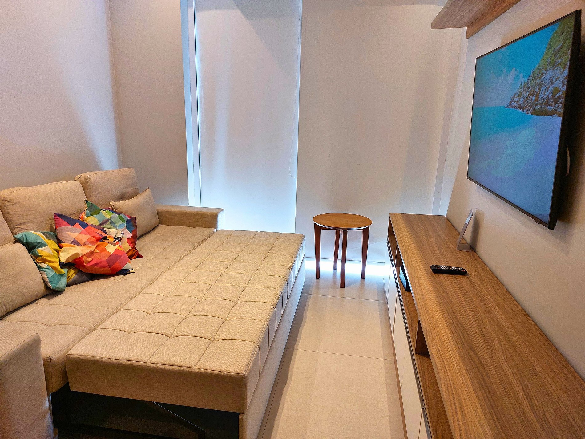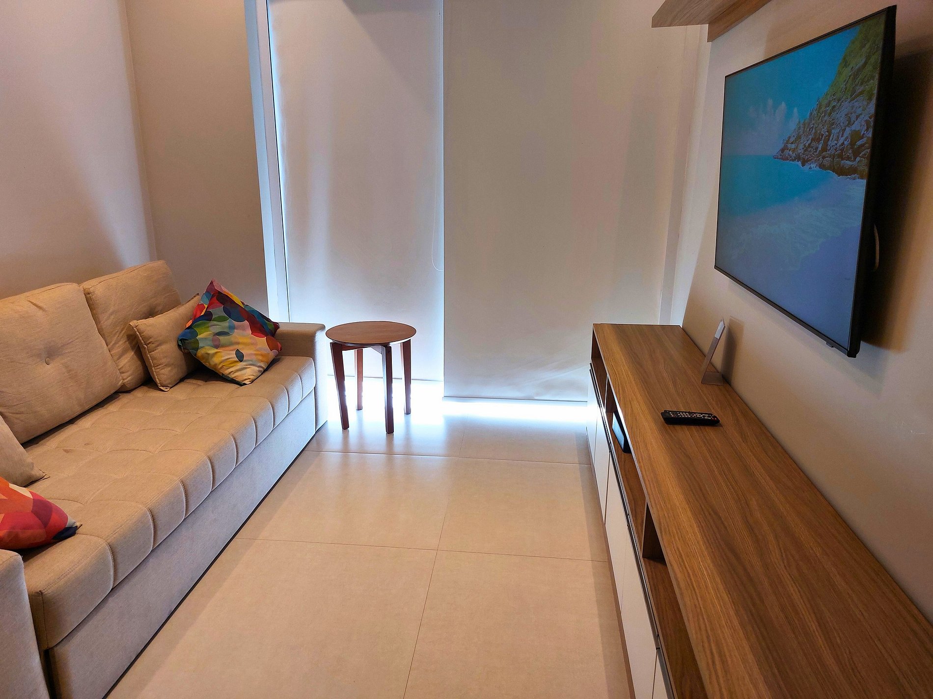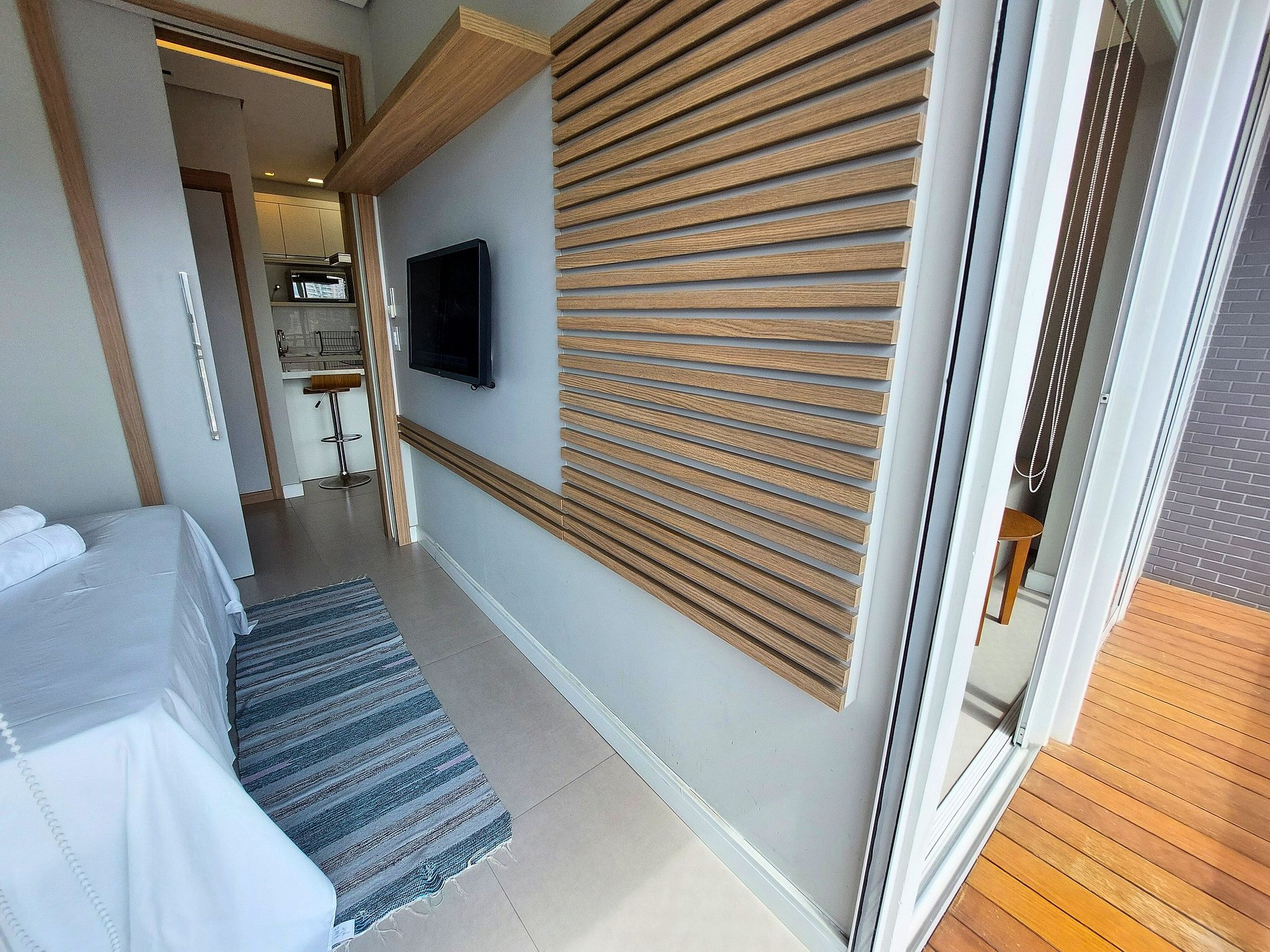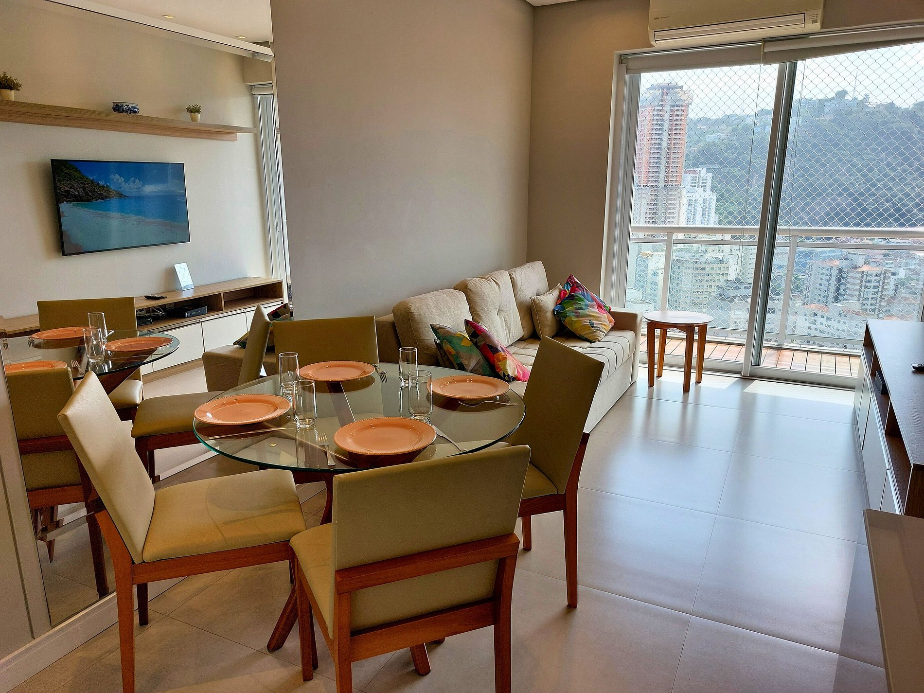 • Possui sacada telada com linda vista para o mar e o Emissário — perfeita para quem viaja com crianças.