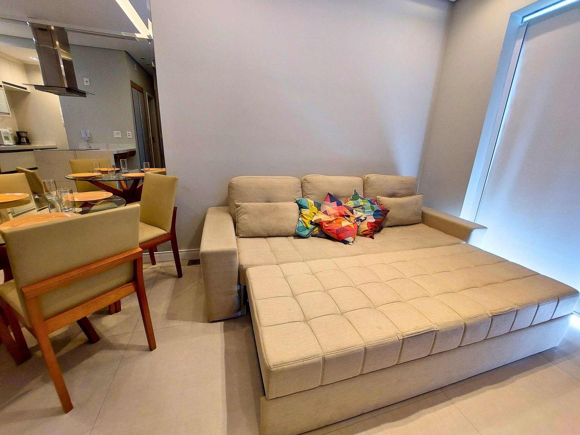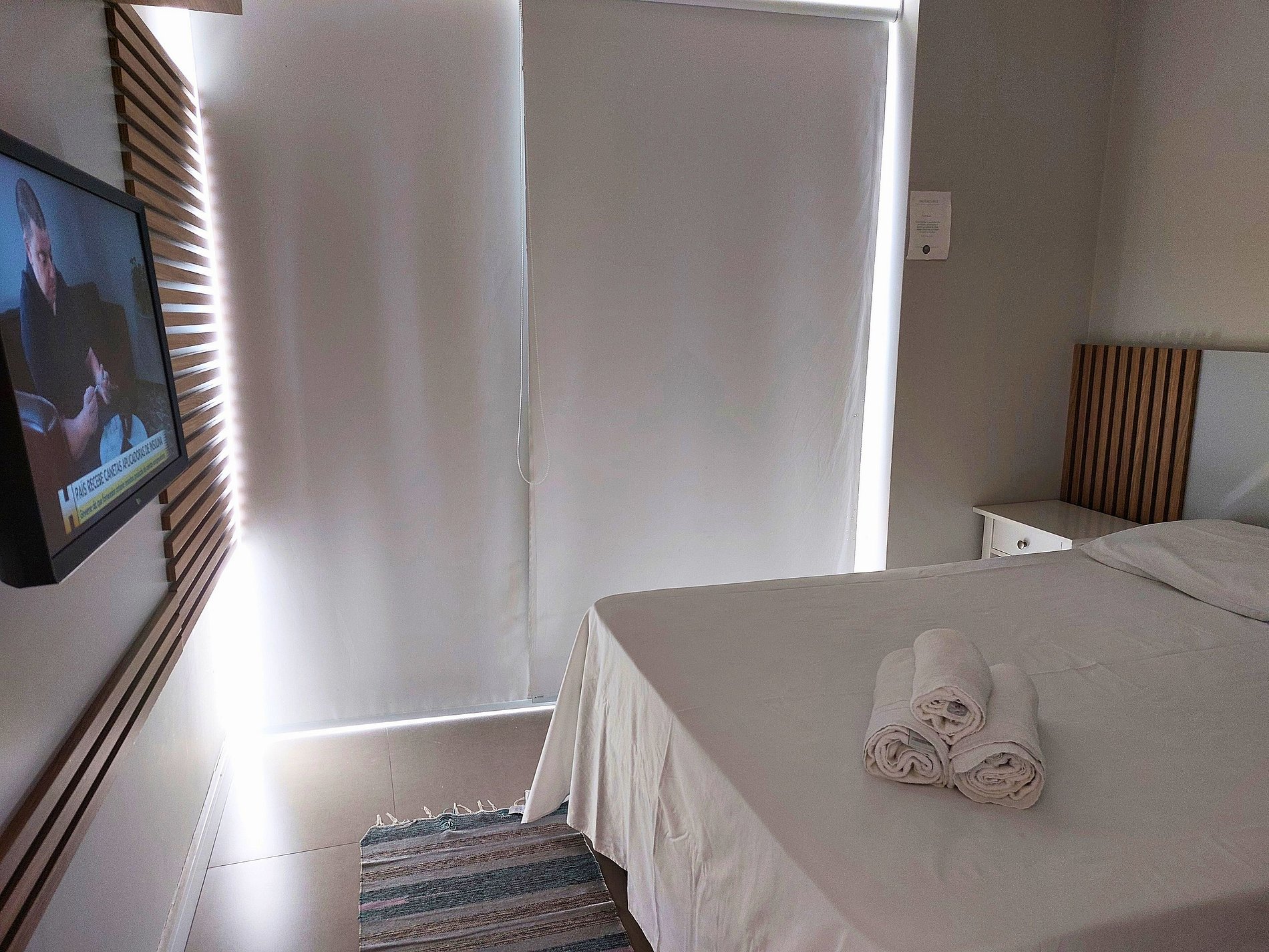 • Roupa de cama, travesseiros e toalhas (toalhas de banho/piscina), conforme o número de hóspedes pagantes, da seguinte forma: A cama de casal estará preparada com os lençóis e 2 travesseiros, 1 toalha de banho por pessoa, há 1 toalha de rosto e 1 toalha de piso por banheiro e 1 manta disponível no apartamento. Os itens para o sofá-cama ficam dentro do armário/gaveta, caso seja uma reserva para mais de 2 pessoas