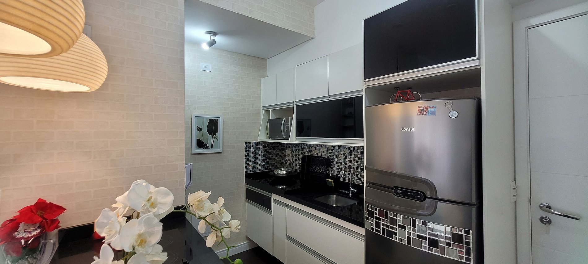 O apartamento 716 foi pensado para você, com seus 45m² acomodam até 3 adultos confortavelmente, com comodidades pensadas para quem gosta de fazer sua comidinha rápida ou simplesmente tomar um vinho e relaxar.