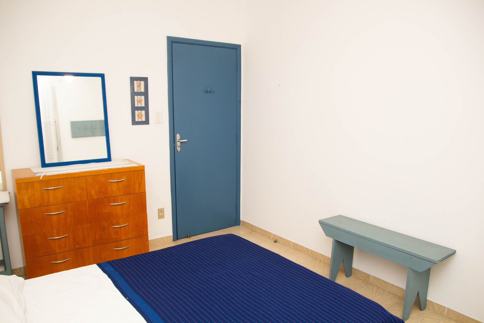 O apartamento tem 1 quarto, 1 banheiro, uma pequena lavanderia e uma sala integrada com cozinha e copa. Acomoda confortavelmente até 4 pessoas, tendo uma cama de casal no quarto e dois sofás-cama na sala.