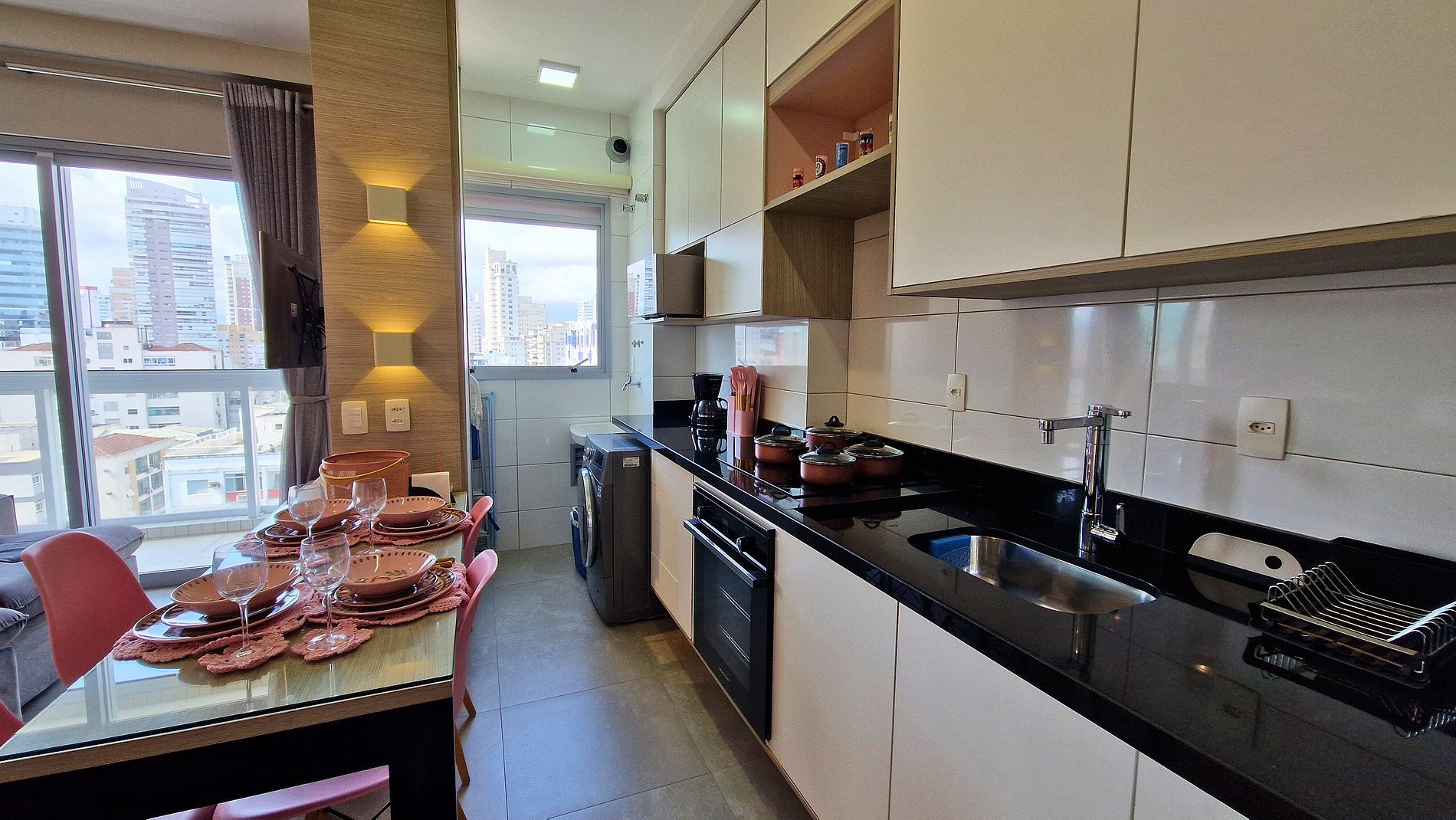 A apenas 3 minutos a pé da praia do Boqueirão em Santos, o estúdio Tarumã 133 conta 47m² e é perfeito para 2 pessoas!