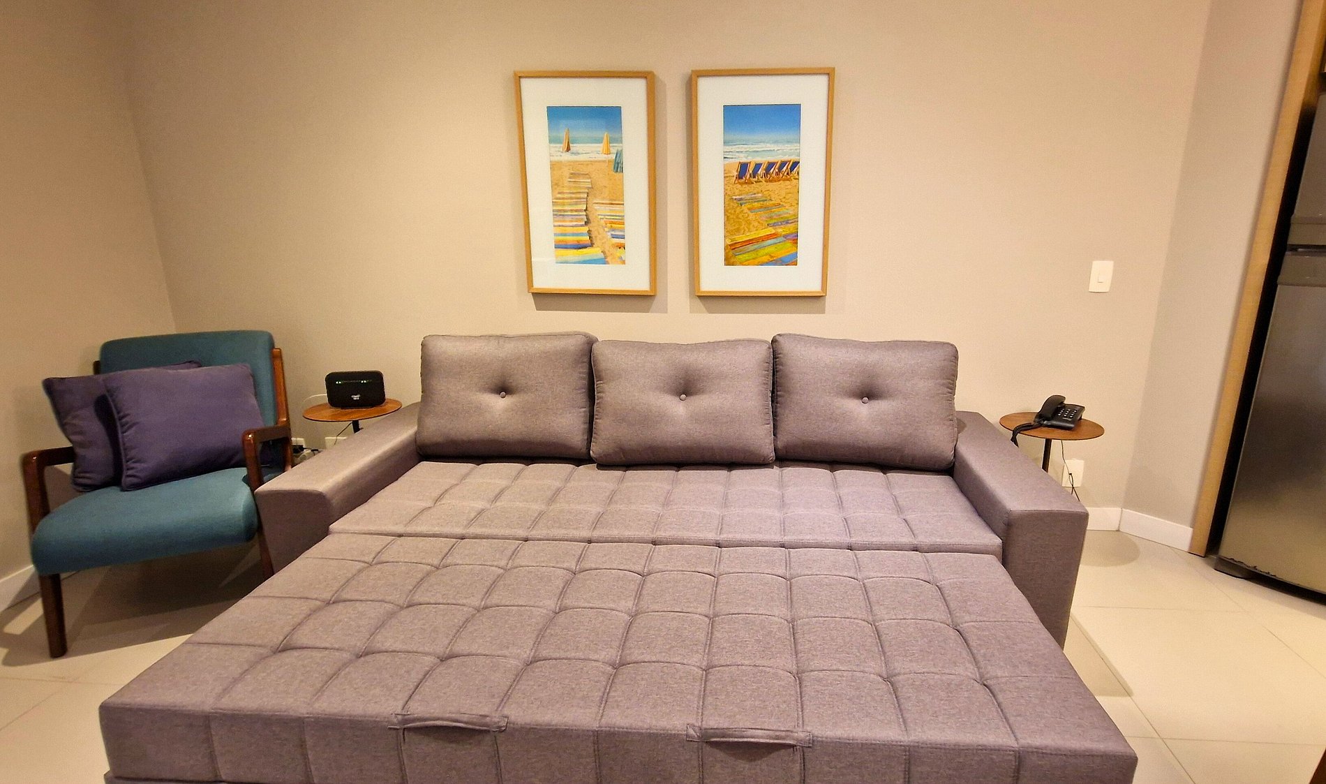• Acomoda confortavelmente 4 pessoas, oferecendo uma cama de casal queen e sofá-cama novinho, possui cozinha equipada com itens básicos para rápidas refeições sendo uma estadia prática e acolhedora