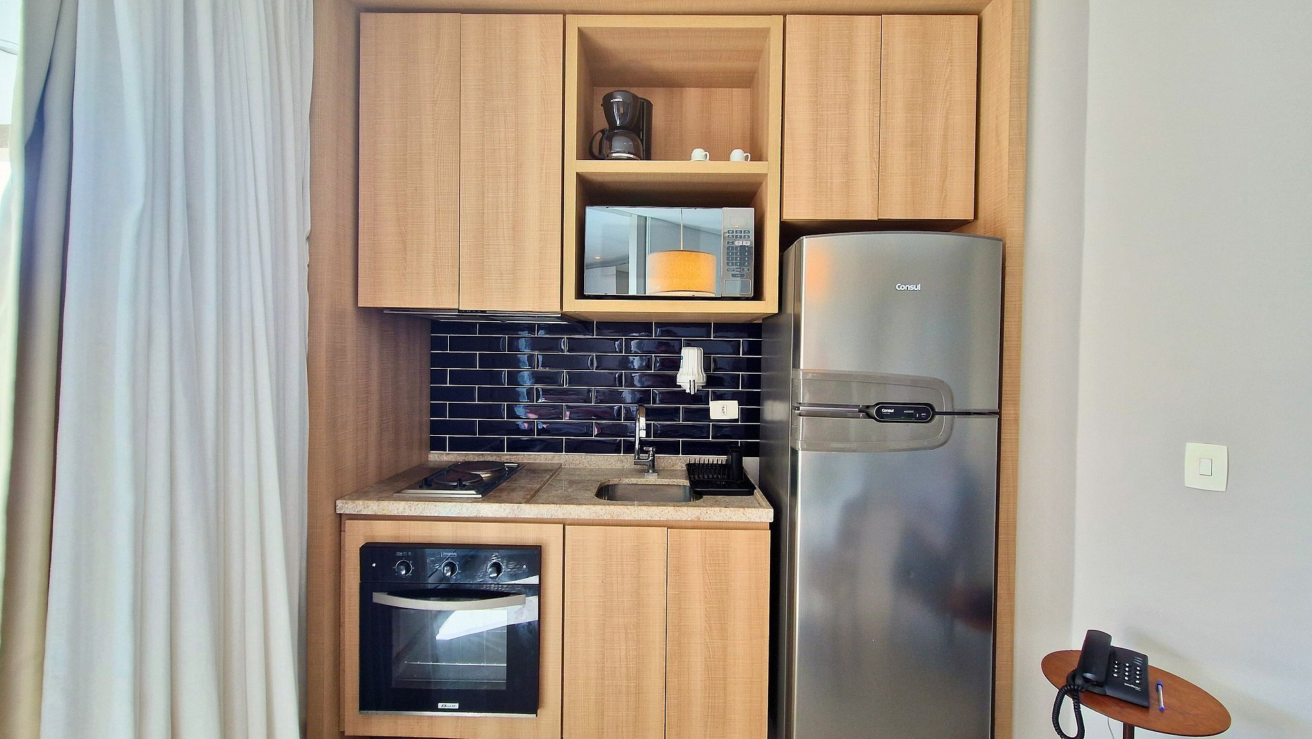 • Acomoda 2 pessoas, com uma cama de casal queen, cozinha equipada com itens básicos para rápidas refeições para uma estadia prática