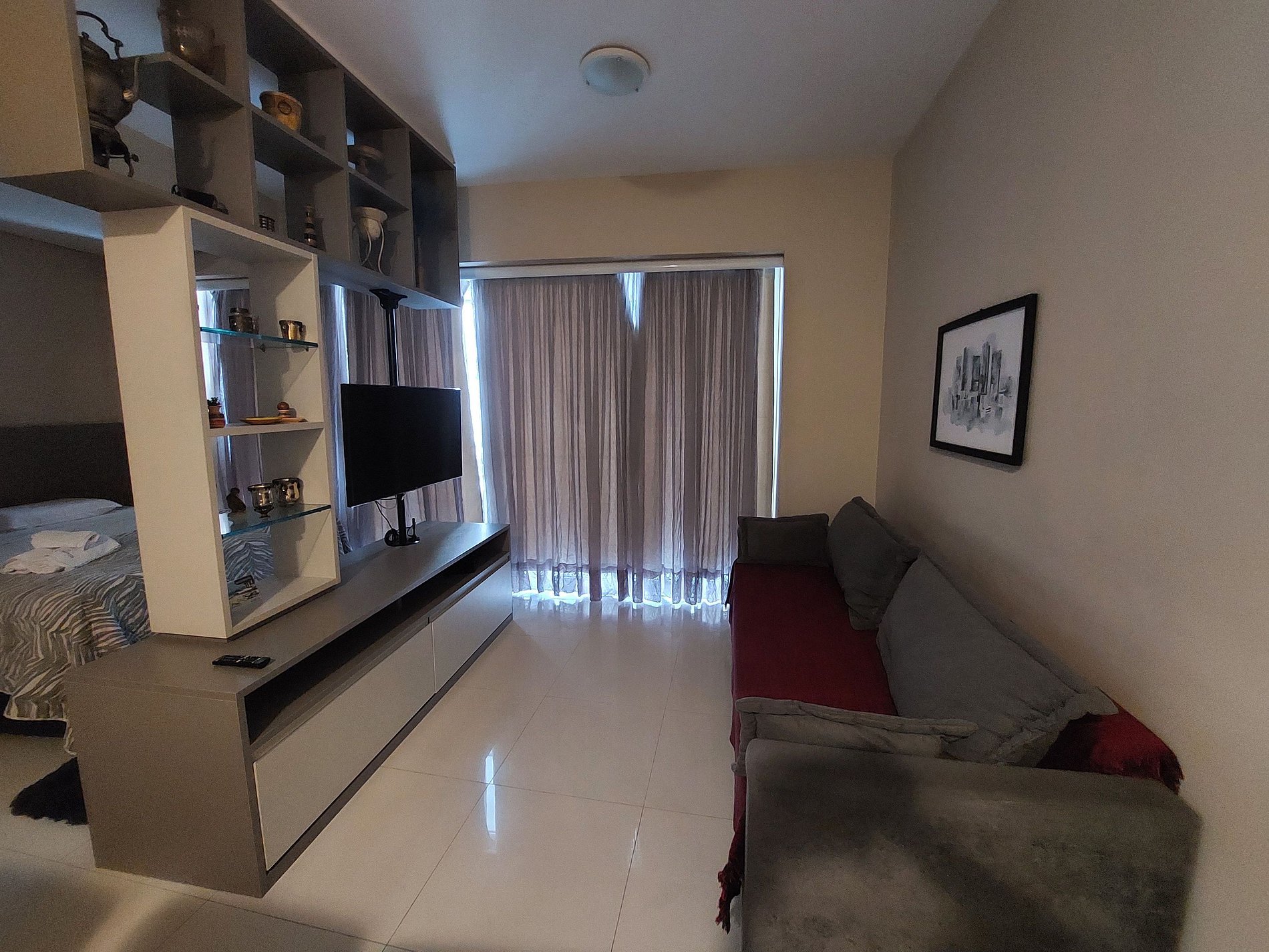 Um estúdio pra chamar de seu! Sinta-se em casa no apartamento 817 no melhor e mais completo condomínio de Santos/SP pertinho da praia e com vista lateral para o mar, o espaço é indicado para casais e viajantes de negócios, também comporta um terceiro adulto ou até duas crianças.