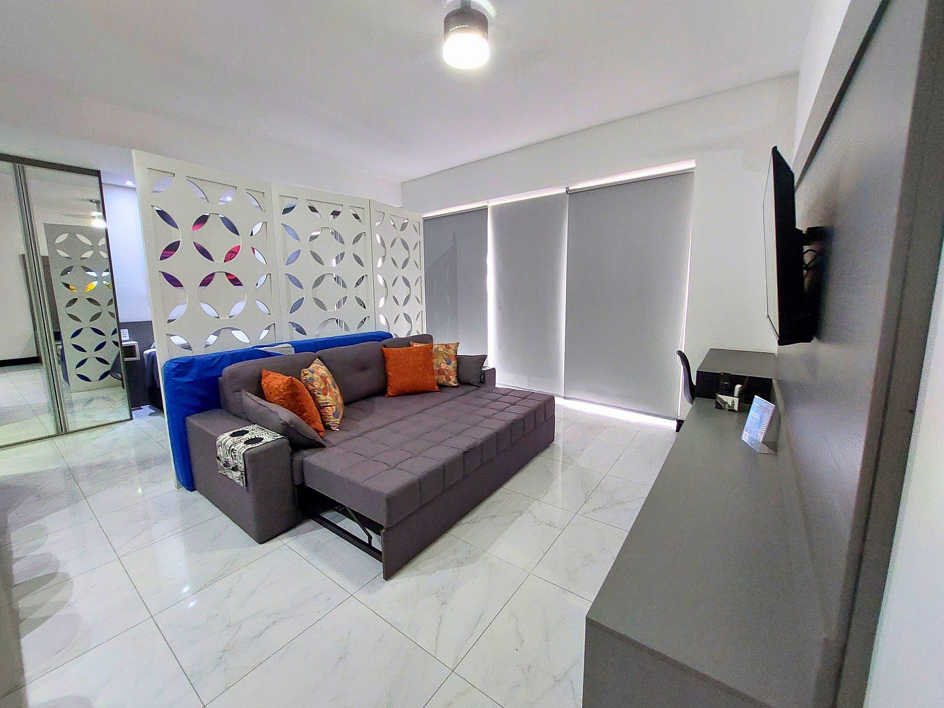 O apartamento 1412 possui sofisticação e requinte em um ambiente clean em 54 m², com vista para a piscina. Com sacada com tela, sendo ótimo para hospedagens com crianças, acomoda uma familia de até 4 pessoas possuindo um sofá cama confortável e um colchão firme. Aceita cães de pequeno e médio porte pesando até 15kg mediante taxa adicional de R$ 120. Gatos não são aceitos.