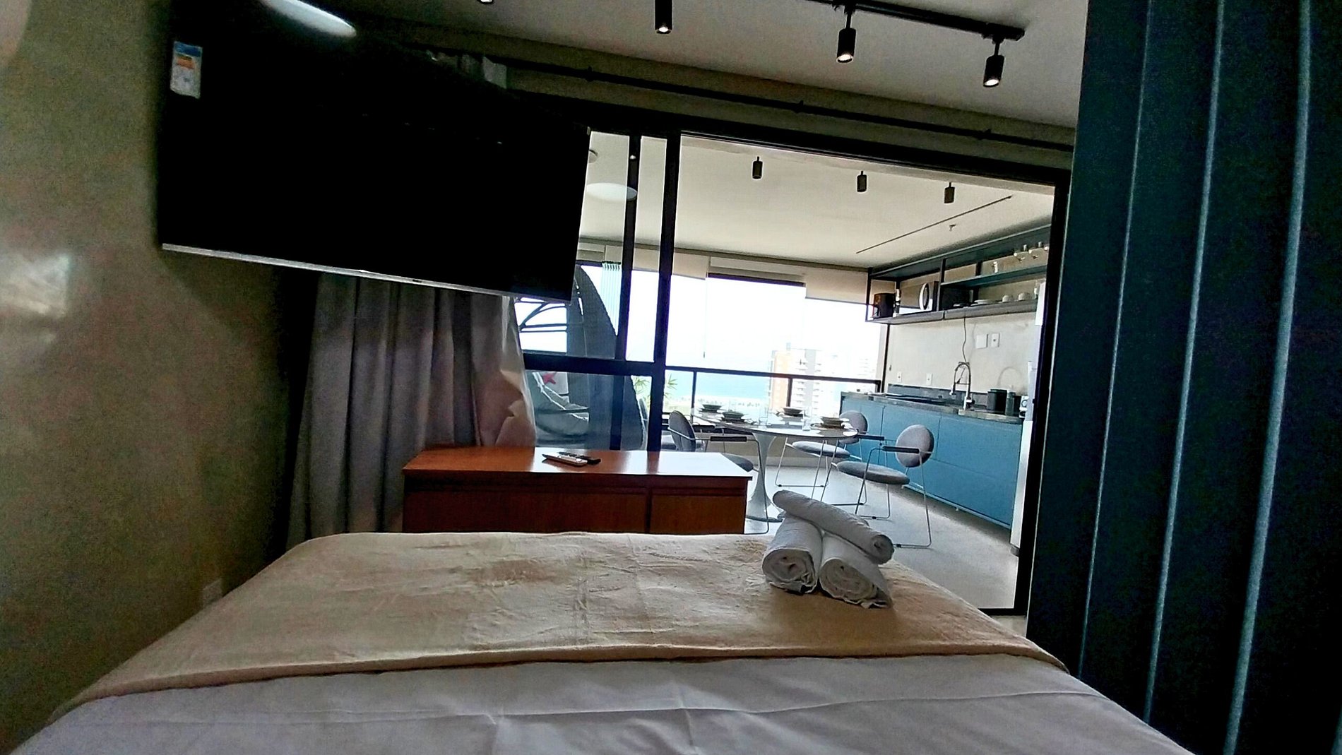 Localizado no condomínio Type Enseada, um dos mais novos lançamentos da cidade, com piscina na cobertura que proporciona uma vista maravilhosa para o mar, super moderno, confortável e seguro, o condomínio e o apartamento oferece tudo o que você precisa para uma estadia inesquecível.
