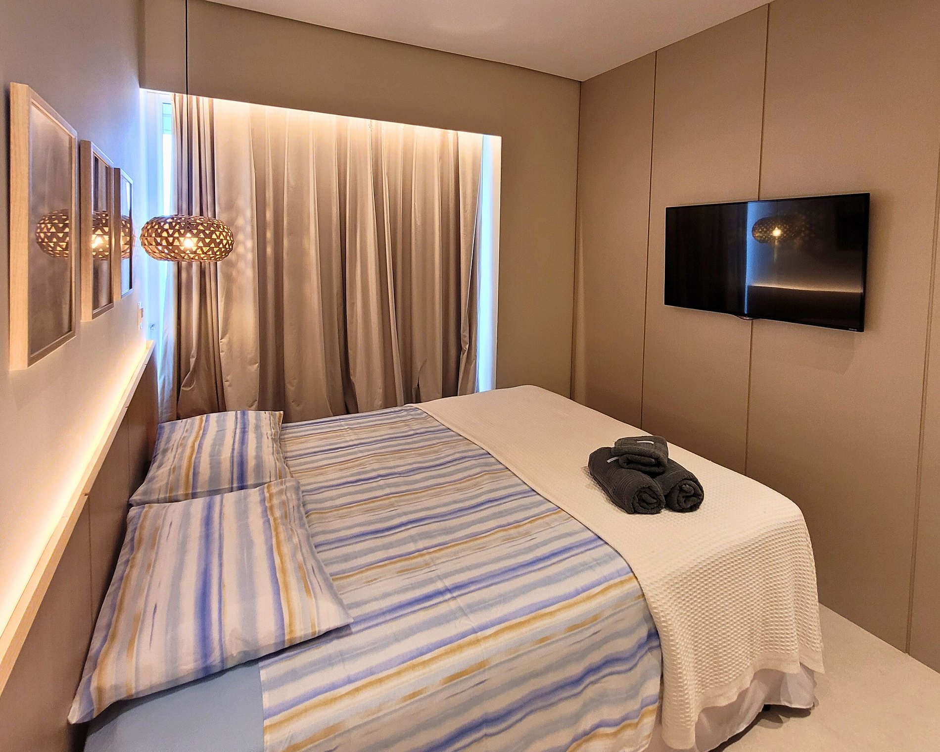 Em sua reserva estará incluso: roupa de cama, travesseiros e toalhas (exceto toalha de piscina/praia) de acordo com a quantidade de hóspedes pagantes, 1 manta para utilização durante a hospedagem, cozinha equipada e acesso às piscinas e demais ambientes do condomínio conforme regras do mesmo, limpeza efetuada por nossa equipe para lhe receber e preparar o apartamento e após a reserva, tudo para que o seu bem-estar esteja garantido.