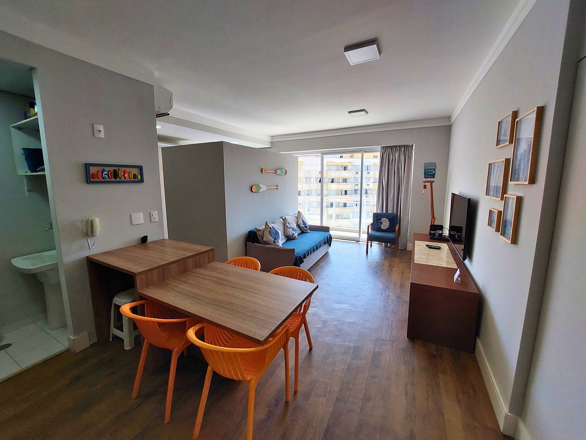 O apartamento 1112 possui vista para a piscina, acomoda uma familia de até 4 pessoas e aceita cães de pequeno e médio porte pesando até 15kg mediante taxa adicional de R$ 120,00). Gatos não são aceitos.