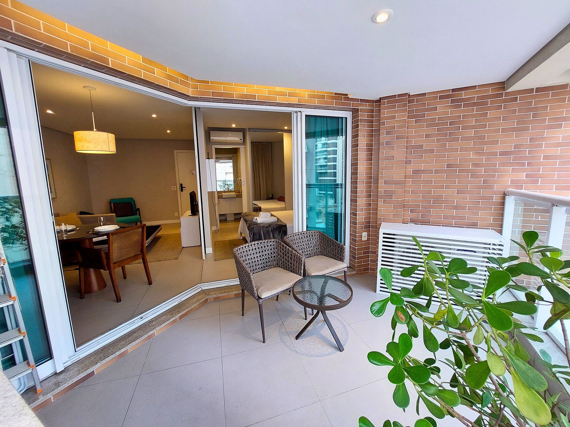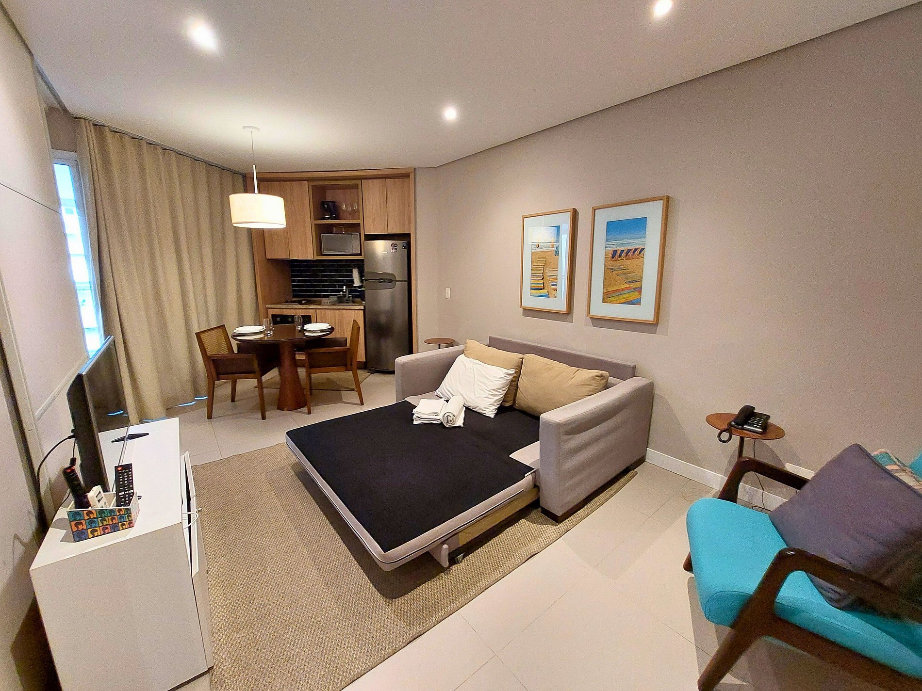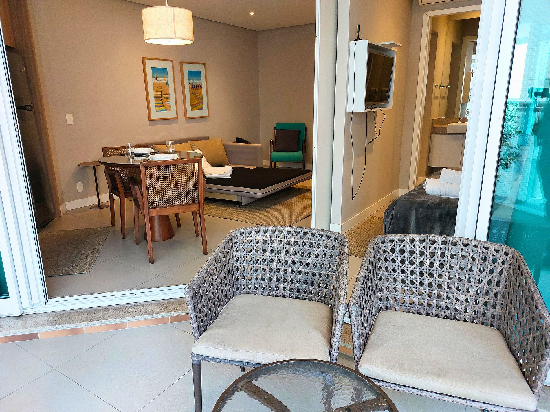 Apart excelente, organizado, limpo, cheirinho agradável "bom ar", decoração bonita, móveis planejados e funcionais otimizando o espaço. Confortável. Varanda espaçosa, excelente para relaxar, tomar um drink ou mesmo realizar as refeições. Cozinha equipada com utensílios (panelas, frigideira, forma de pizza, faca, tábua, colheres de preparar e servir, pratos, talheres, copos, taças de vinho, xícaras), cafeteira, tudo limpo e organizado nos armários. Tinha até café em pó e açúcar que foi bem útil. Geladeira com freezer ótimo. Ferro e tábua de passar roupa. Sugestão de utensílios: escorredor de macarrão; alguma travessa simples para servir as refeições(plástico mesmo). Trocaria a TV por assinatura (Claro, Net) por um aparelho que transforma em Smart, Fire Stick da Amazon ou similares, tem canais gratuitos e os aplicativos. Não solicitamos serviço de quarto, pois foram só dois dias, não houve necessidade de limpeza ou troca de roupas de cama ou banho. Adorei e pretendo voltar.