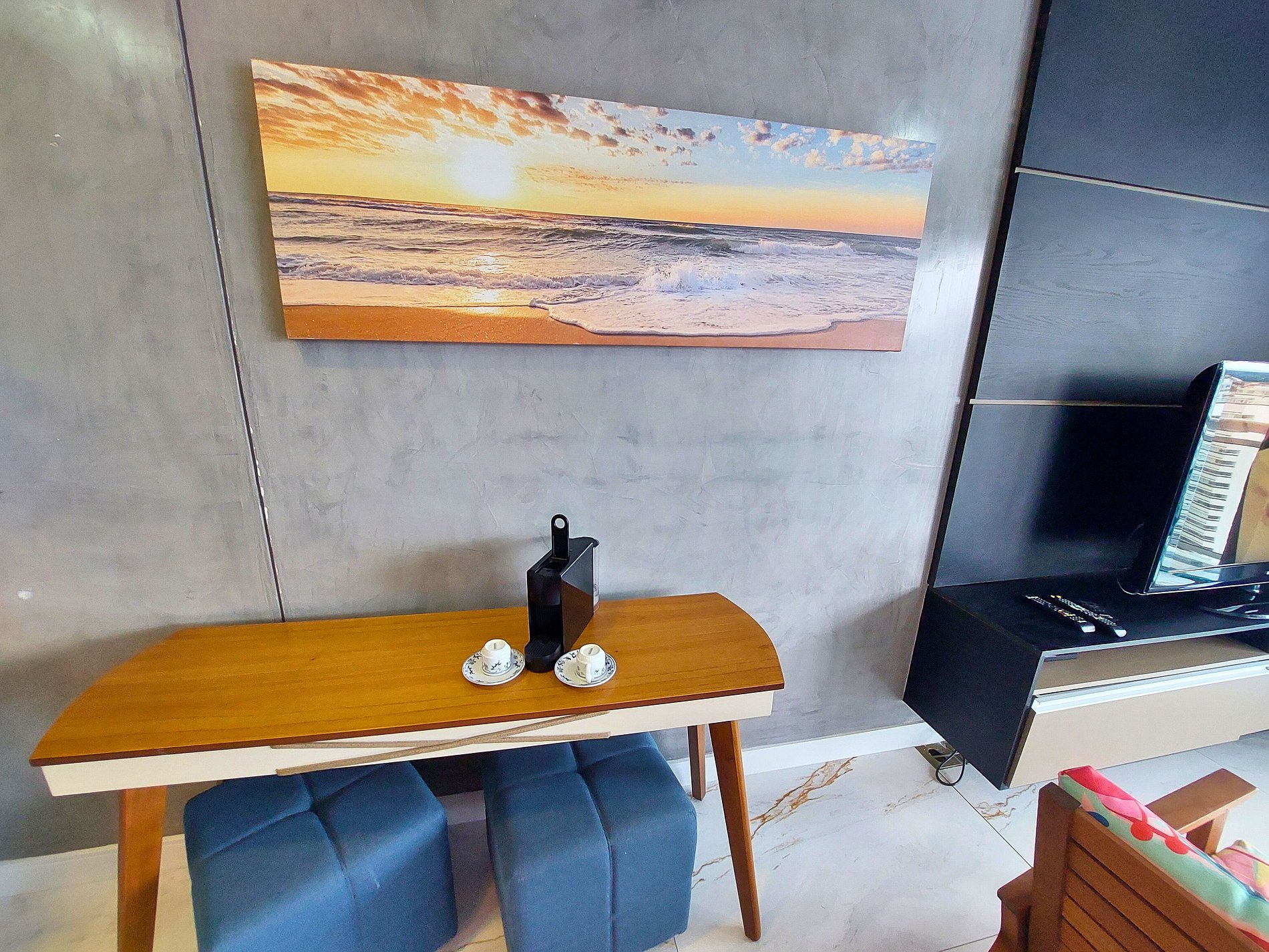 O apartamento é top, a estrutura do prédio com piscina aquecida e borda infinita frente ao mar, foi um diferencial. À praia é bem tranquila e bonita bem em frente. Mercado do lado, restaurante e farmácias do lado, tudo pertinho.
