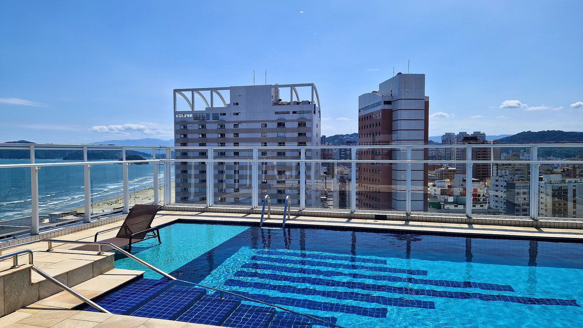 • Piscina no 20º andar com vista panorâmica para o mar, perfeita para relaxar.