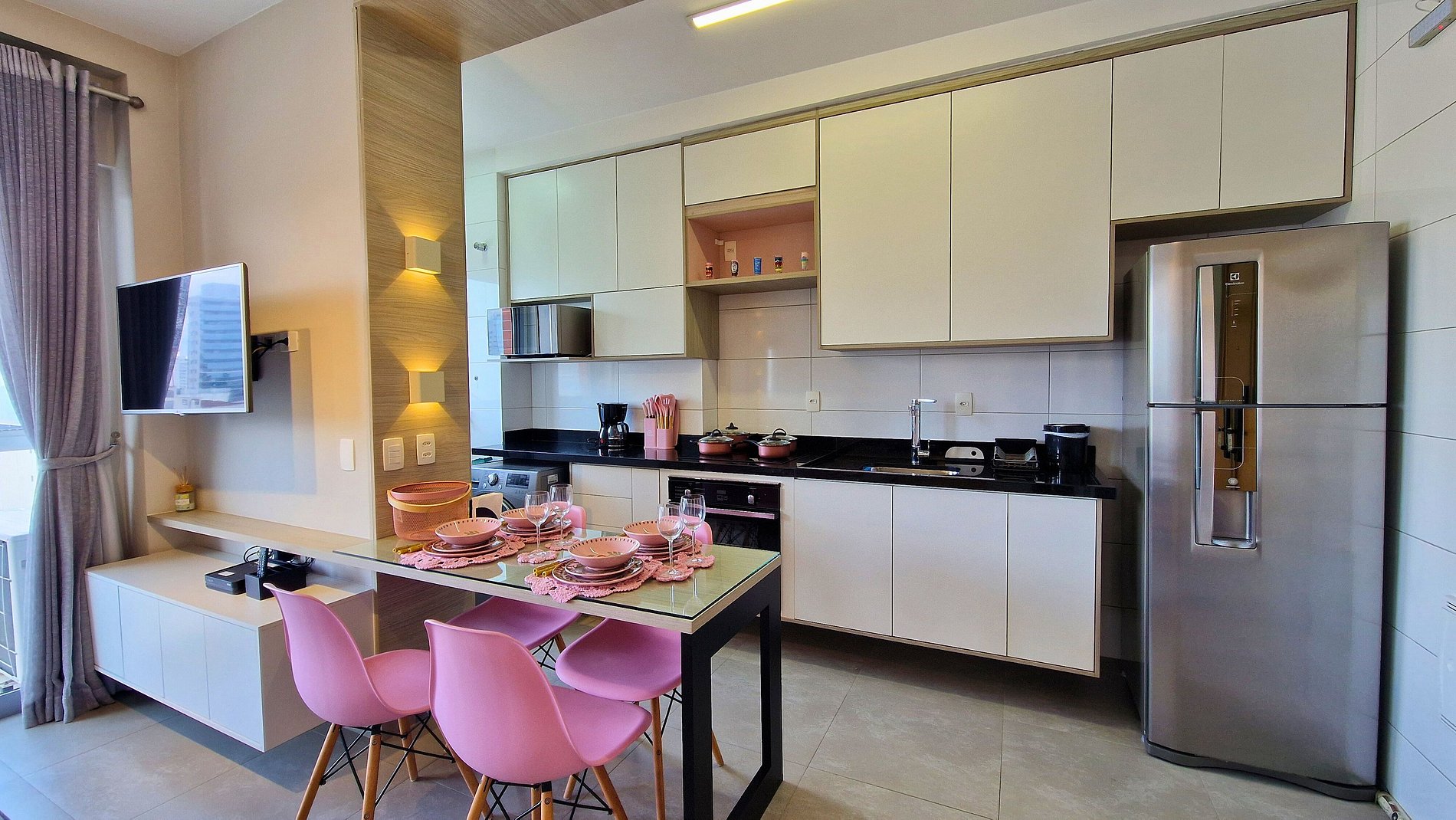 Com cama de casal padrão, sofá superconfortável e ambiente moderno, o apê oferece praticidade e uma localização excelente no coração do Boqueirão.