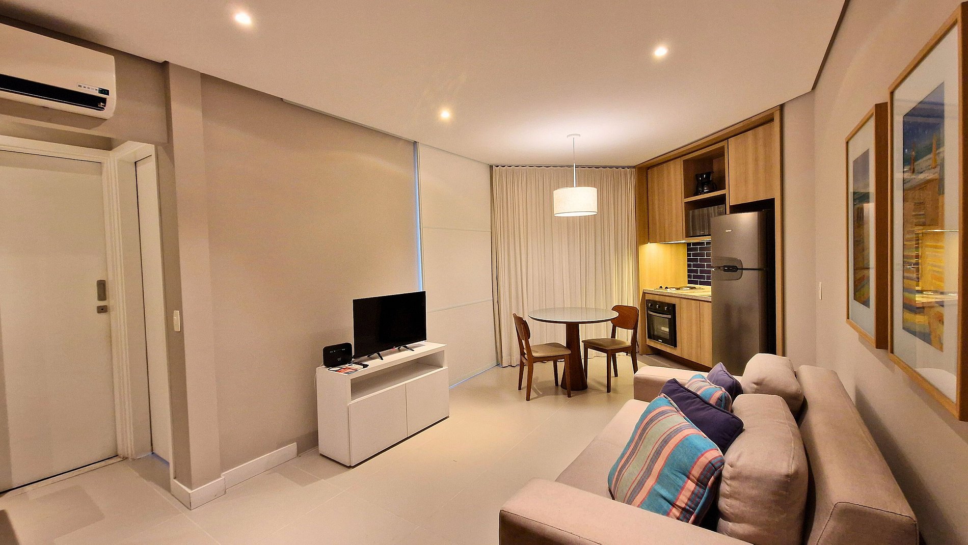 • Acomoda confortavelmente 4 pessoas, oferecendo uma cama de casal queen e sofá cama, possui cozinha equipada com itens básicos para rápidas refeições sendo uma estadia prática e acolhedora.