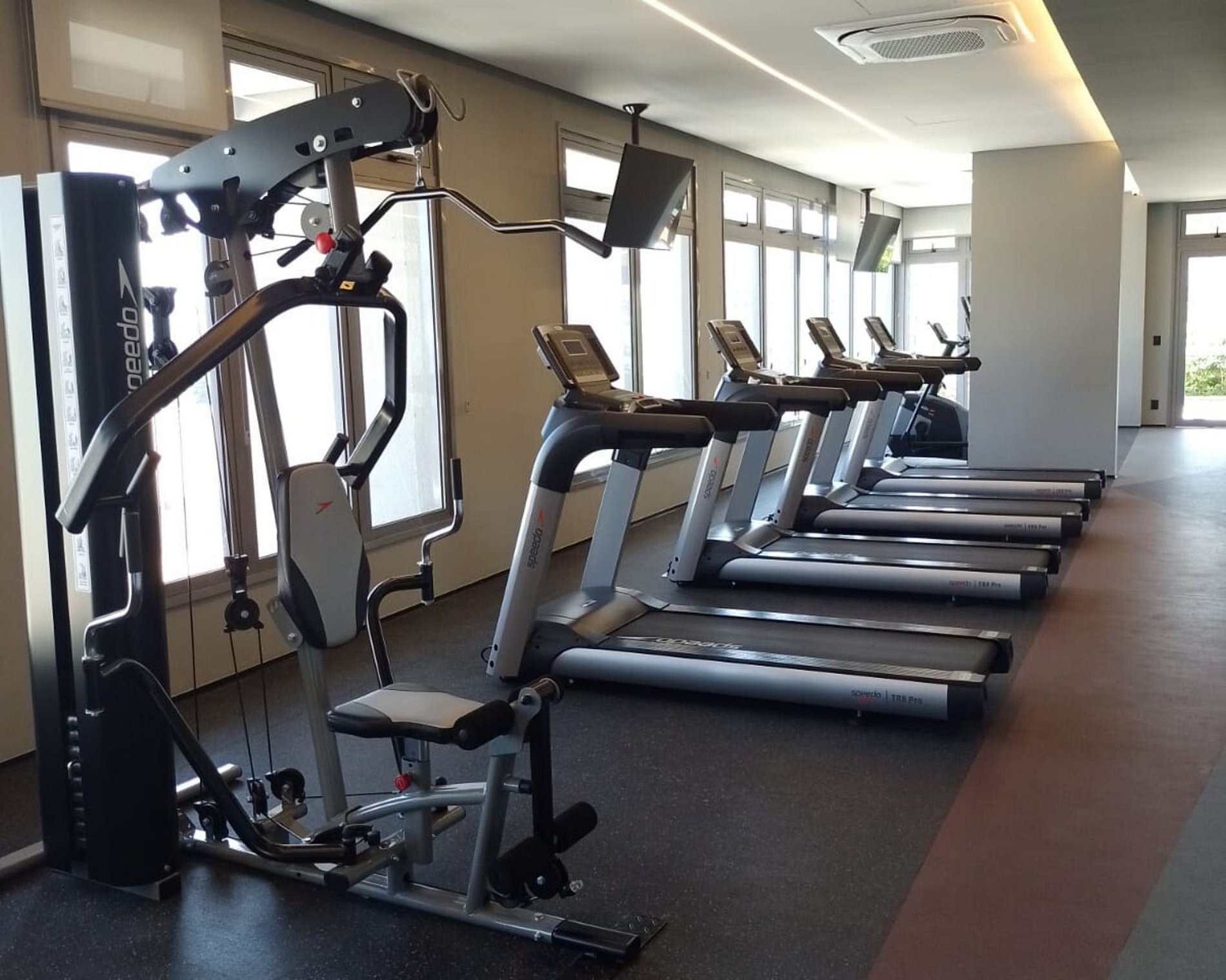 Academia Bem Equipada: Área fitness com aparelhos modernos para manter sua rotina de exercícios.