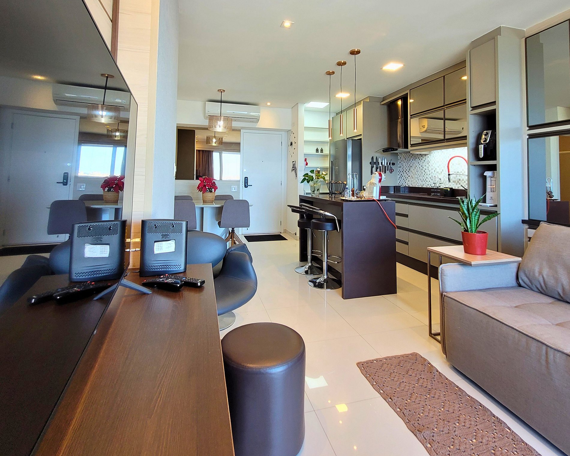 Em sua reserva estará incluso: roupa de cama, travesseiros e toalhas (exceto toalha de piscina/praia) de acordo com a quantidade de hóspedes pagantes, 1 manta para utilização durante a hospedagem, cozinha equipada e acesso às piscinas e demais ambientes do condomínio conforme regras do mesmo, limpeza efetuada por nossa equipe para lhe receber e preparar o apartamento e após a reserva, tudo para que o seu bem-estar esteja garantido.