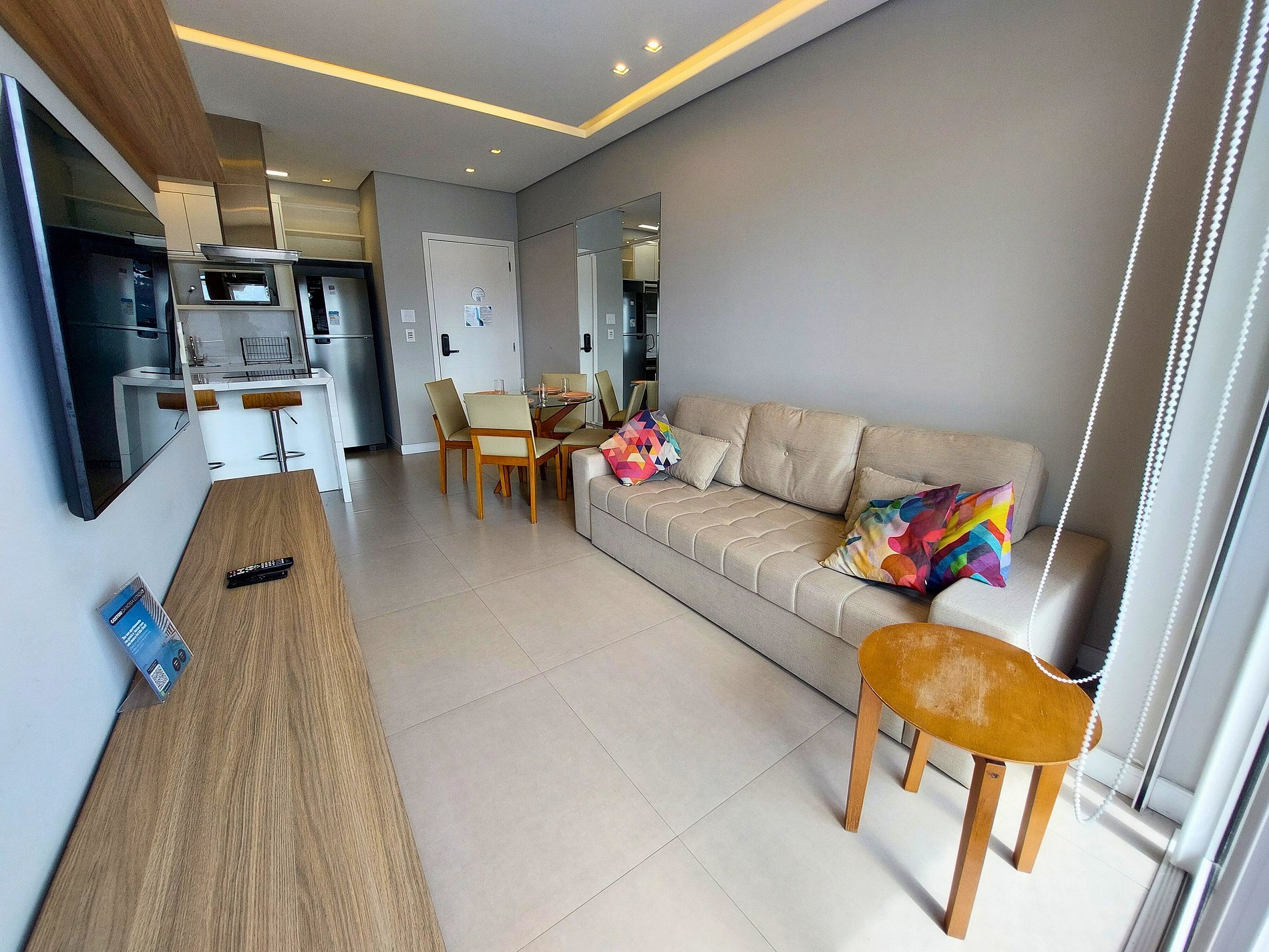 • Possui sacada telada com linda vista para o mar e o Emissário — perfeita para quem viaja com crianças.