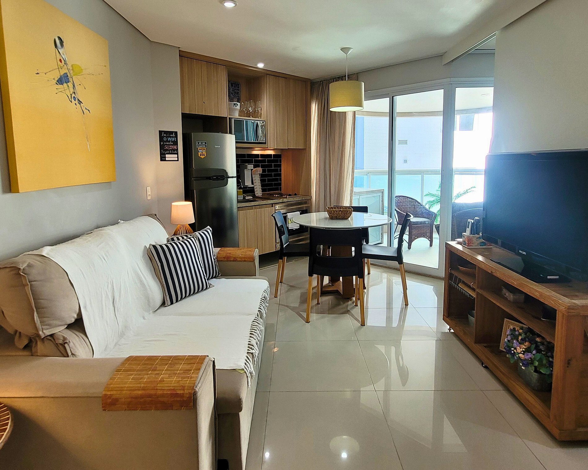 A estadia foi maravilhosa! O apartamento 708 é muito bom. Confortável, seguro e limpo. Ar condicionado em todos os quartos e sala. Chuveiros excelentes. Falta ducha higiênica ou chuveirinho. Distante uma quadra da praia. Farmácia, padaria, restaurante , bar e supermercado bem próximo. Tem vaga de estacionamento. A equipe da Book Santos é muito rápida no suporte pelo WhatsApp. Isso ajuda muito. Me hospedei por 8 dias com o meu marido, minha mãe e minha sogra. Não tinha máquina de lavar roupas (fez muita falta). Não tinha aparelho de TV no quarto do casal. O apartamento precisa de manutenção na persiana do quarto, nas maçanetas das portas e nos gabinetes das pias.precisa trocar os rolamentos da porta balcão da sala. Precisa de iluminação na pia da cozinha. Pratos de sobremesa serão importantes na próxima estadia.
