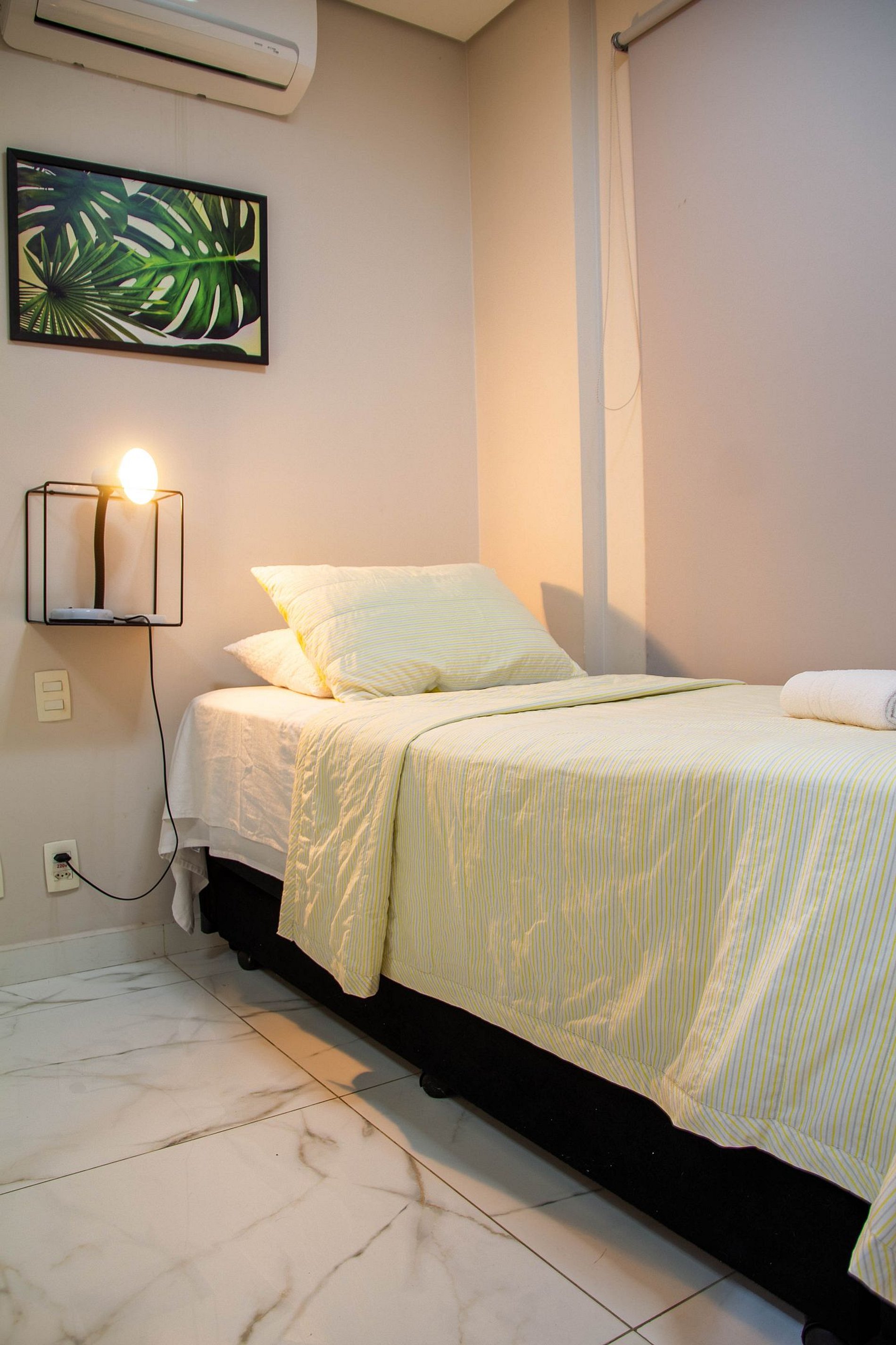 • com uma área total de 69 m², possui 2 quartos, na suíte será possível acordar com essa vista graças a uma pequena sacada privativa, no outro quarto há uma cama de solteiro com auxiliar.