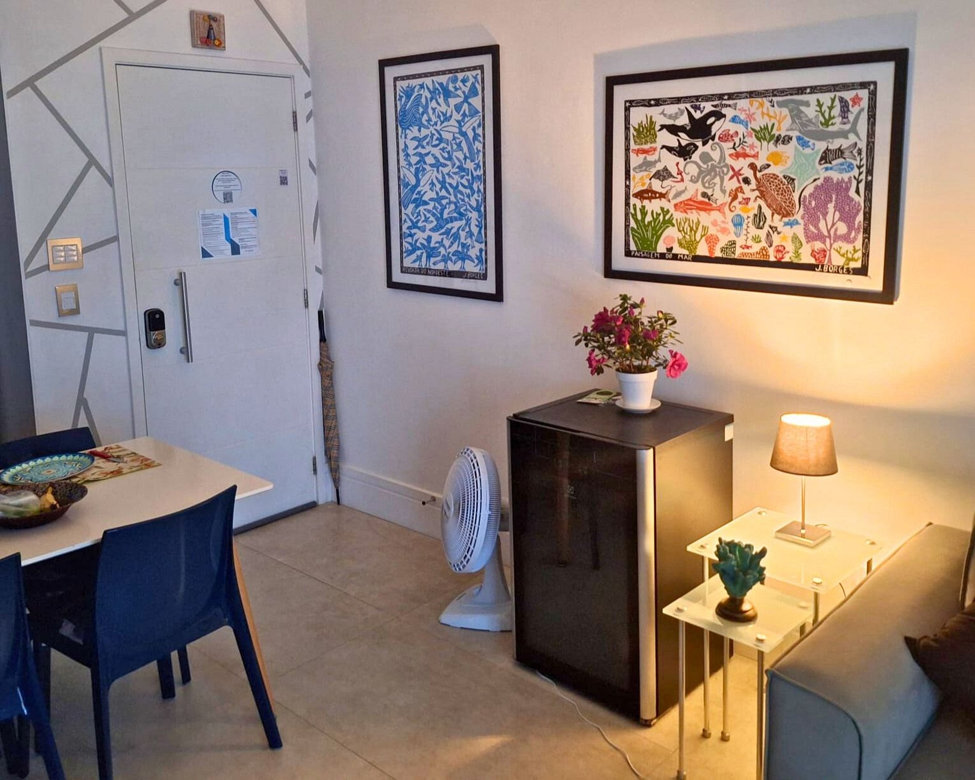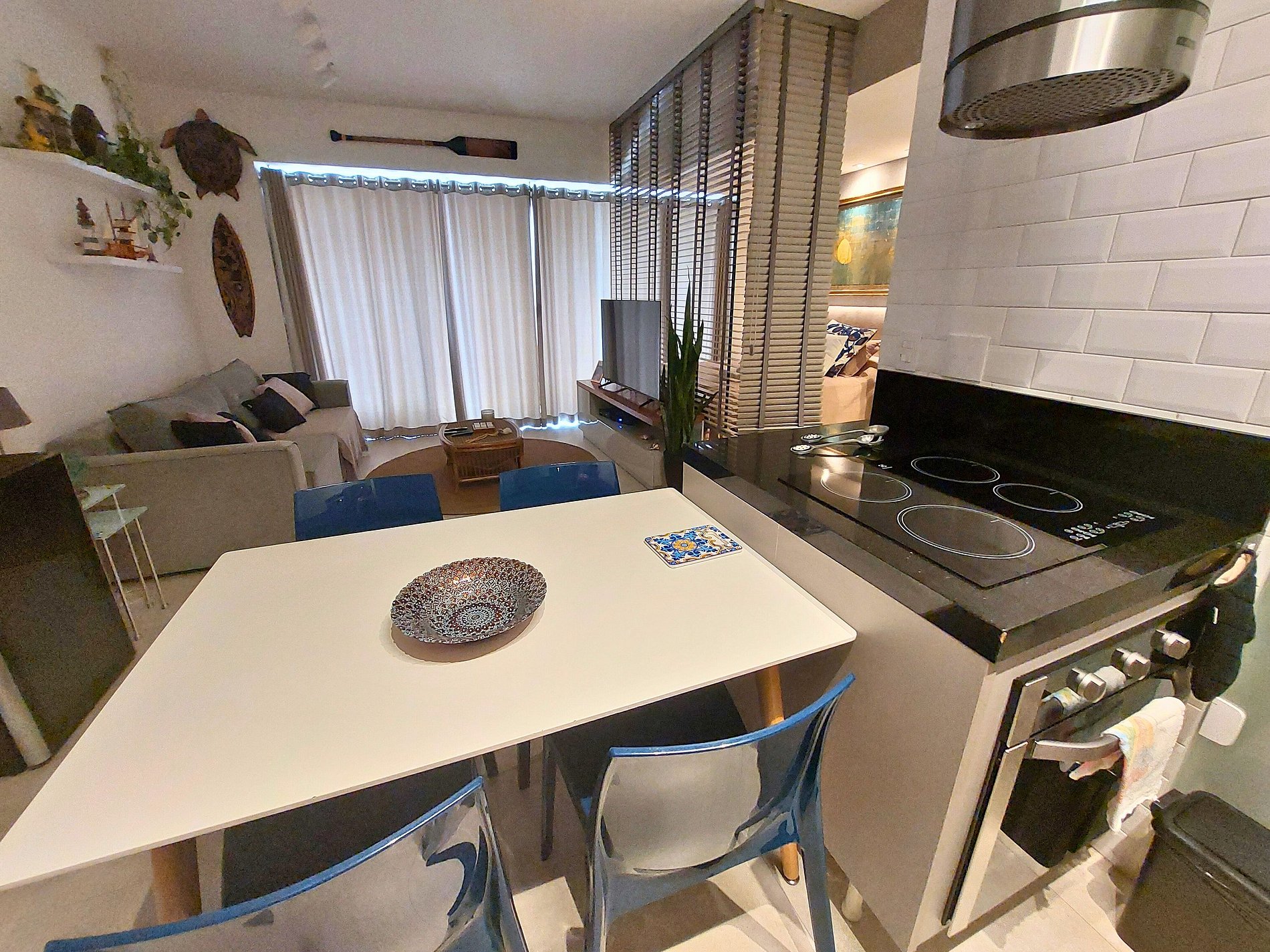 O espaço é indicado para casais e viajantes de negócios, há também um sofá de 1,75m² para o 3º hóspede. Com uma tv de 55" e som ambiente, com seus 49 m² com certeza vai te trazer momentos memoráveis no melhor condomínio de Santos!