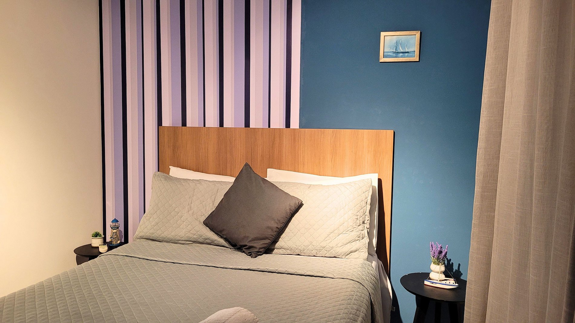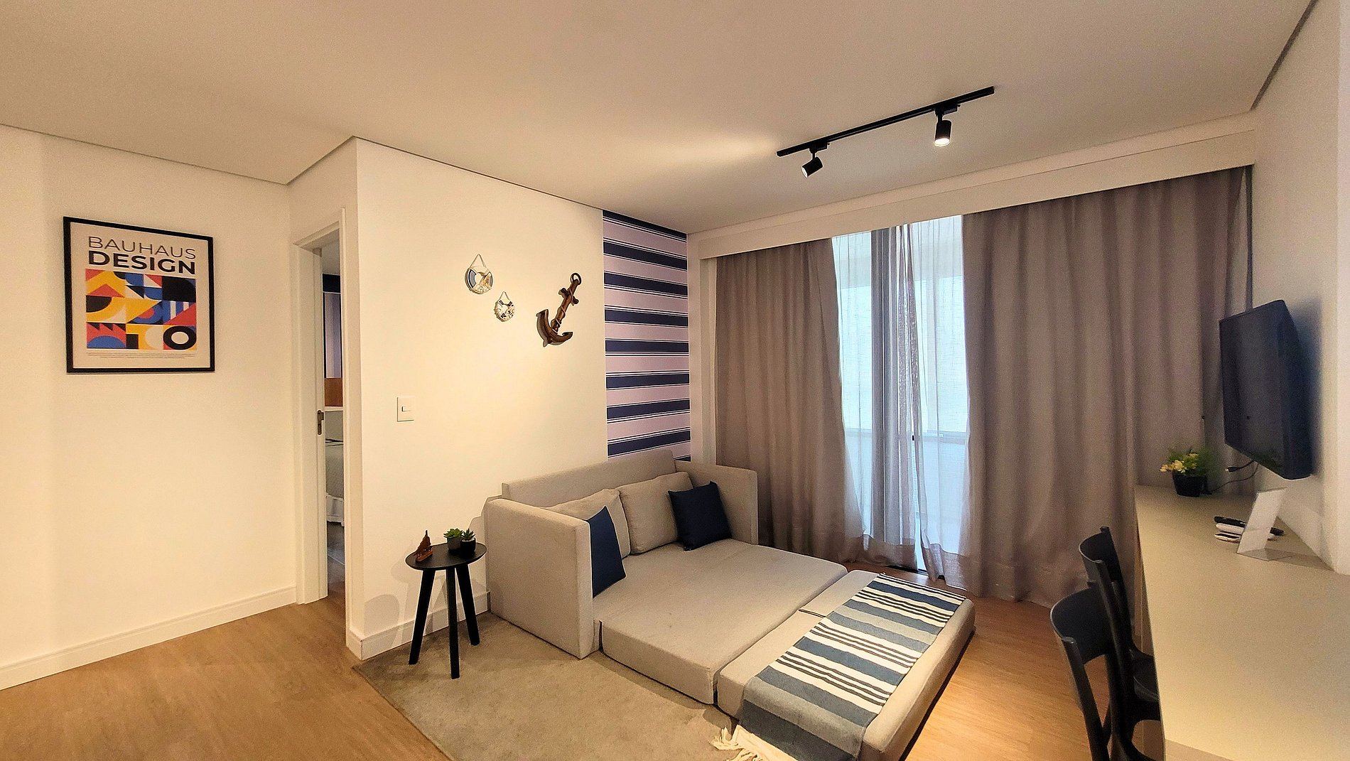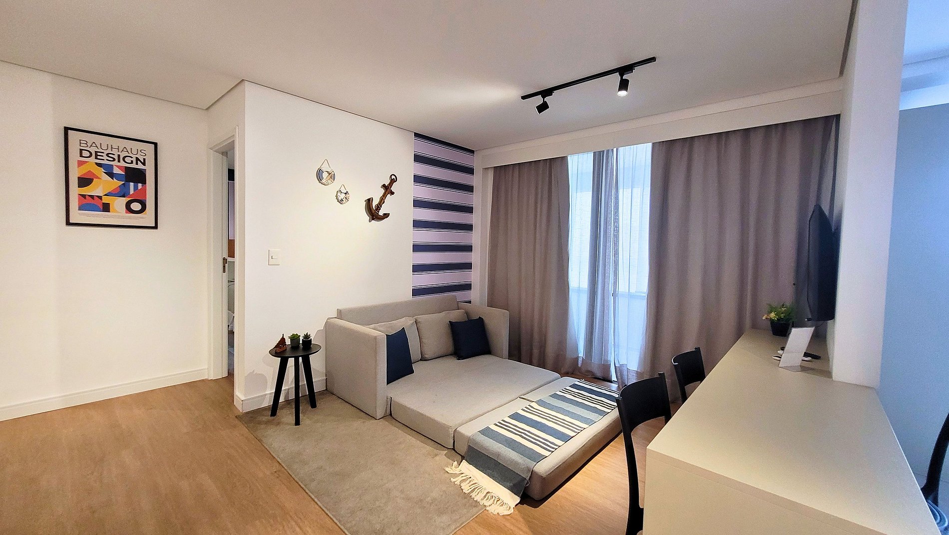 • O apartamento conta com uma cama casal tamanho padrão superconfortável que te trará ótimas noite de sono depois de um longo dia na praia ou passeando pela cidade além de um sofá-cama na sala.