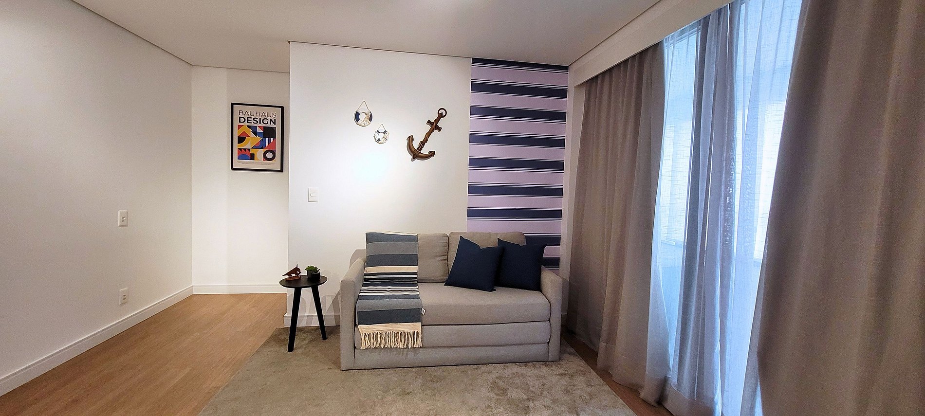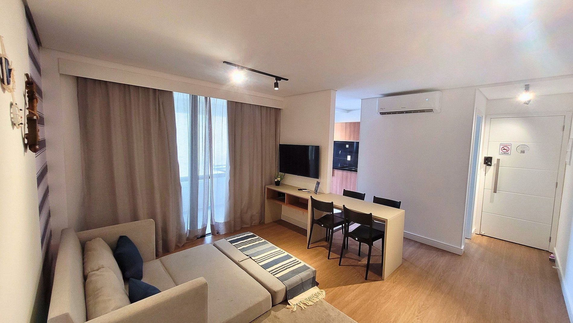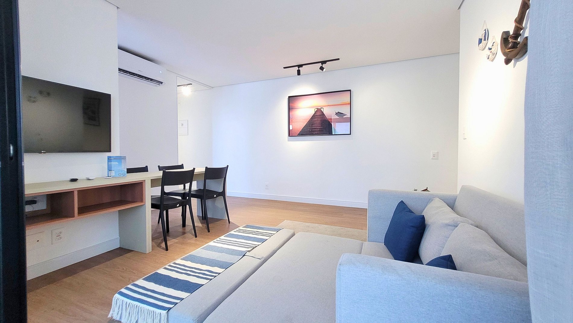 • O apartamento conta com uma cama casal tamanho padrão superconfortável que te trará ótimas noite de sono depois de um longo dia na praia ou passeando pela cidade além de um sofá-cama na sala.