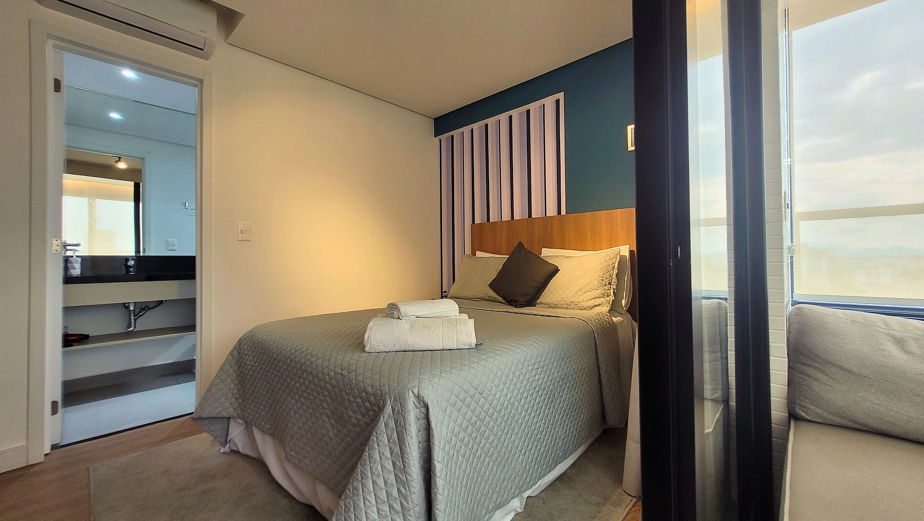 O Housi 133 , no 13º andar da Ponta da Praia, em Santos, é perfeito para 4 pessoas