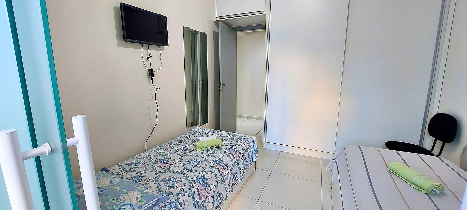 Apartamento bem espaçoso e muito boa distribuição. Chuveiro e ducha higiênica no quarto com as camas de solteiro estavam vazando. Os outros pontos atende perfeitamente