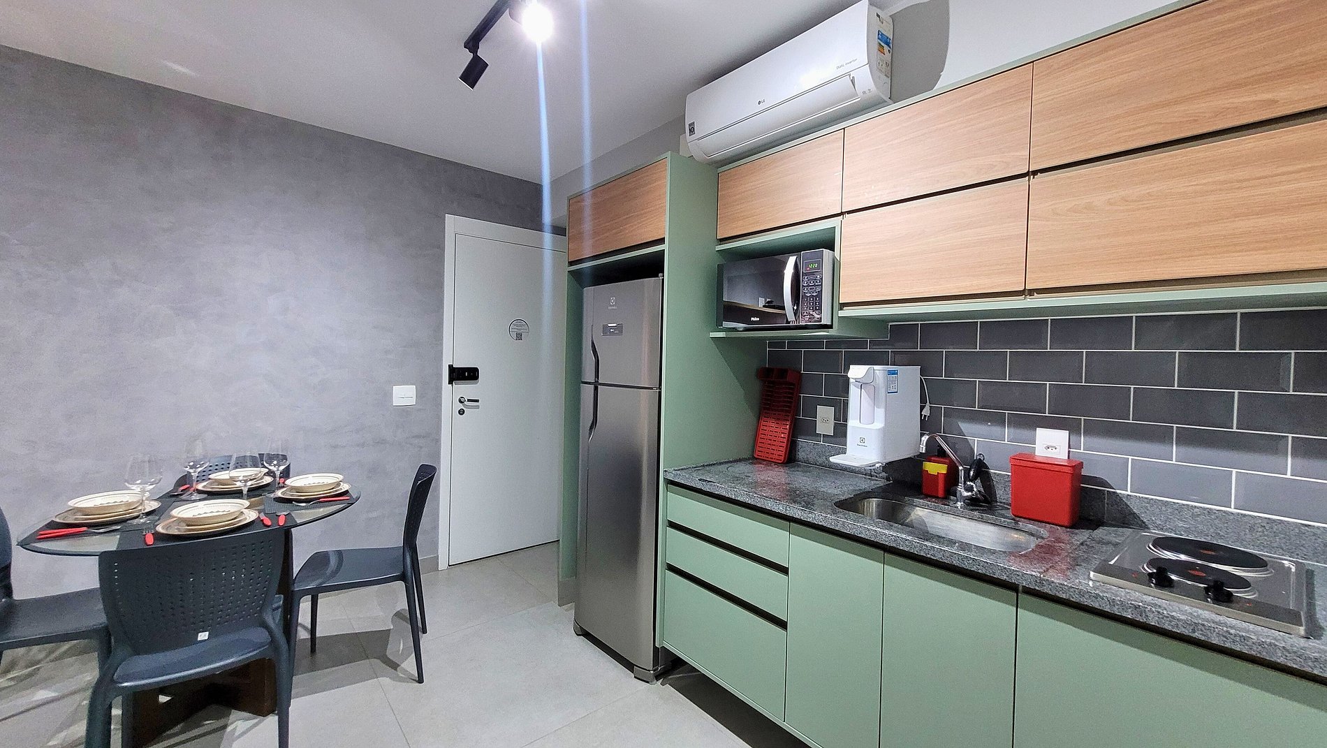 Não é que não gostei, mas senti falta de uma sanduicheira e um espelho de corpo todo fora do banheiro.