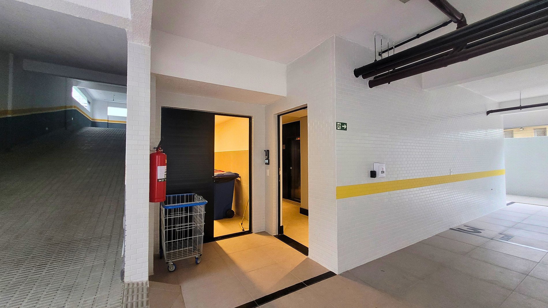 A vaga de garagem possui 2,40 m de largura por 4,80 m de comprimento, com demarcações individuais. Atenção: devido à altura limitada na rampa de acesso entre os andares, veículos do tipo SUV, pick-up ou modelos mais altos podem não ser compatíveis com o local.
