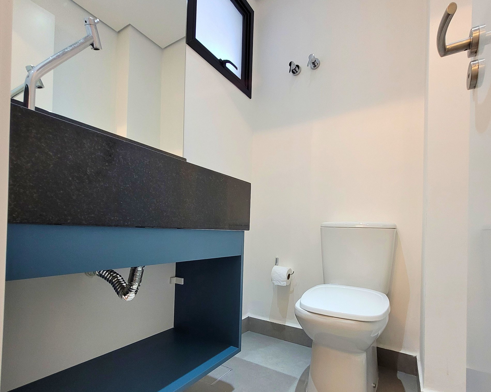 A vaga de garagem possui 2,40 m de largura por 4,80 m de comprimento, com demarcações individuais. Atenção: devido à altura limitada na rampa de acesso entre os andares, veículos do tipo SUV, pick-up ou modelos mais altos podem não ser compatíveis com o local.