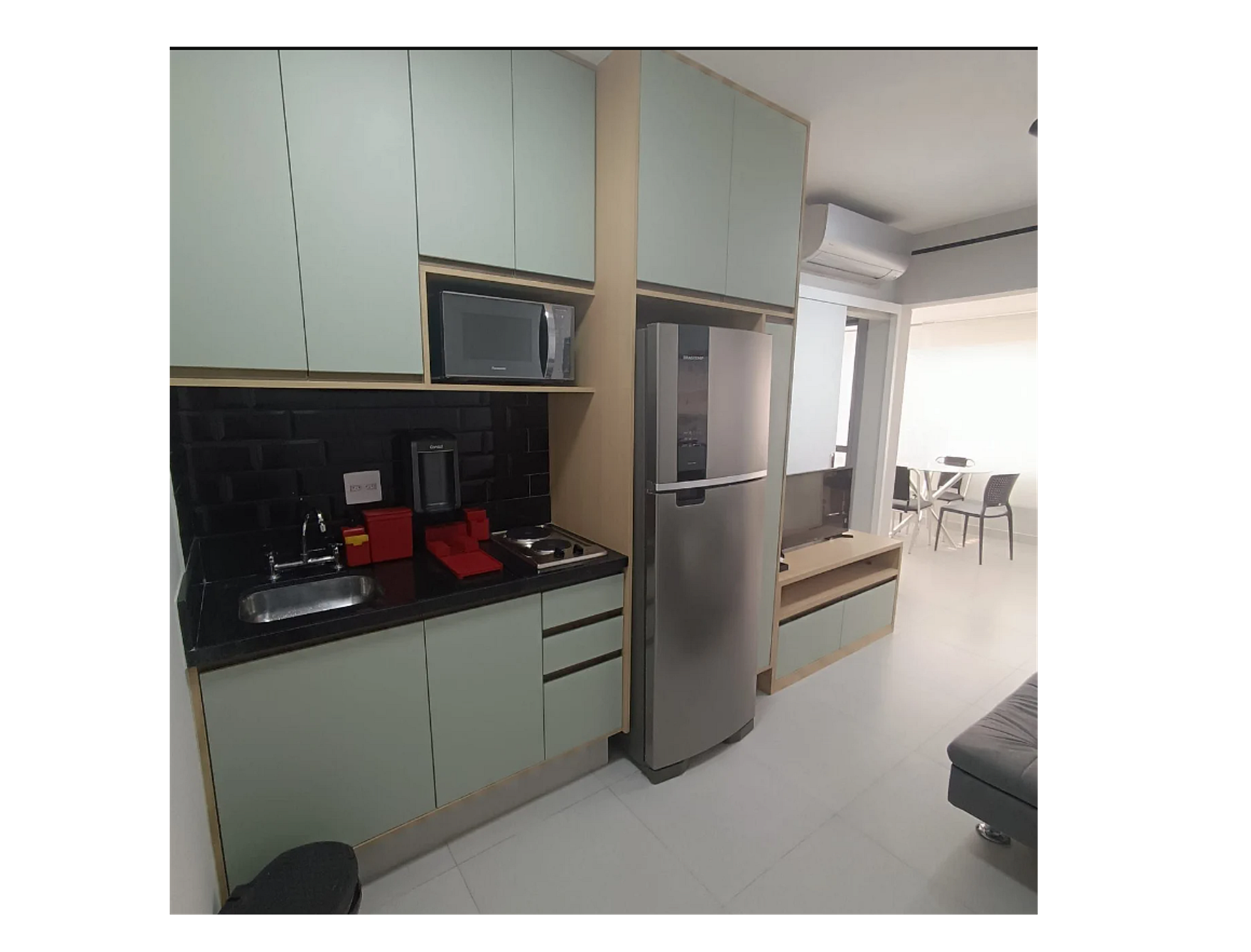 Fiquei 1 semana nessa acomodação. É uma ótima localização, cabe 3 pessoas, mas, para 3 pessoas é apertado. Para períodos longos, o mais indicado é 2 pessoas. O prédio é bem legal, possui academia, uma área de co-working muito boa e aceita pet. Faltou alguns itens básicos de cozinha, como sanduicheira e um lugar para lavar salada. Água gelada não tinha. Porém, o apartamento é muito bonito e muito confortável. Conclusão final, é um apartamento ótimo e muito fiel as imagens.