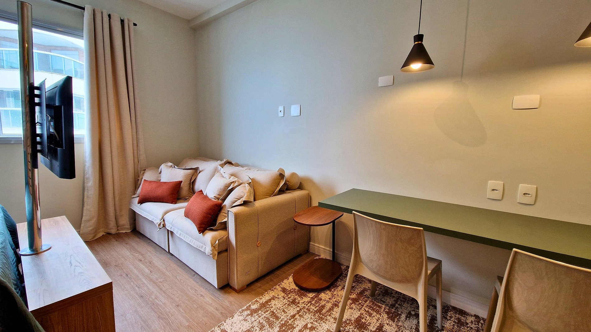 Estúdio 2304 – Helbor Stay: com 26m², novo, decorado em elegantes tons pastéis, confortável e a apenas 1 quadra da praia, com vista para o mar!