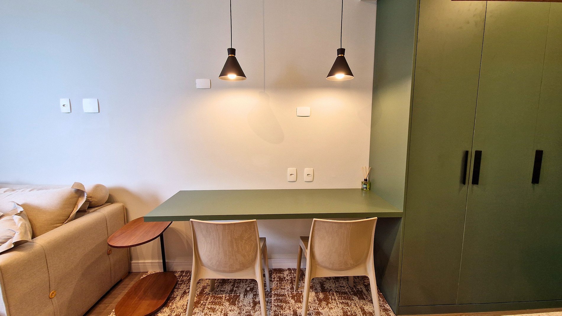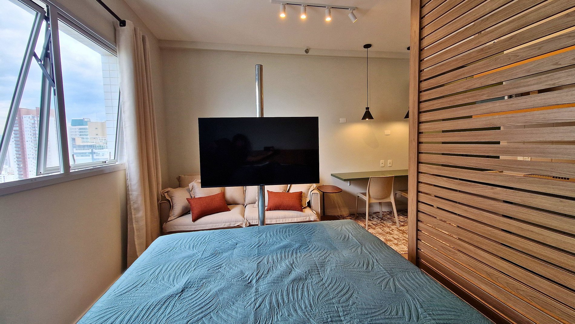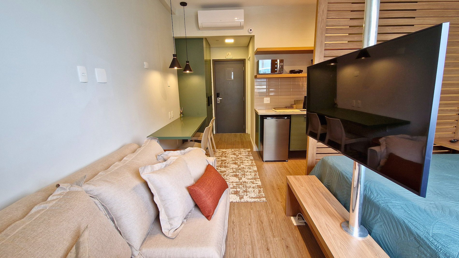 Estúdio 2304 – Helbor Stay: com 26m², novo, decorado em elegantes tons pastéis, confortável e a apenas 1 quadra da praia, com vista para o mar!