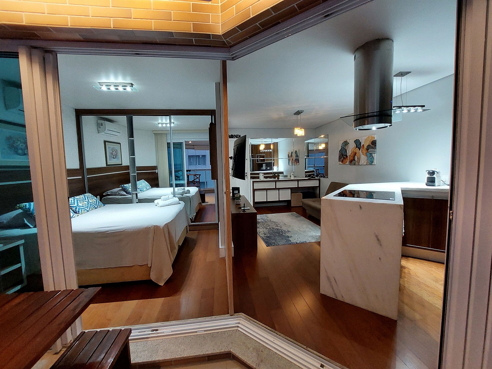 O espaço é indicado para casais e viajantes de negócios, também comporta um terceiro adulto ou até duas crianças. Super aconchegante com seus 45m que surpreende até mesmo uma pessoa exigente.