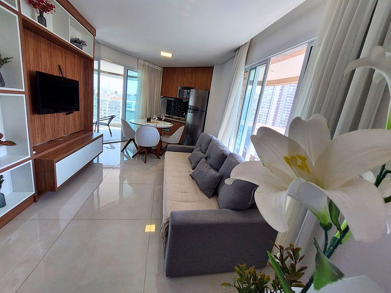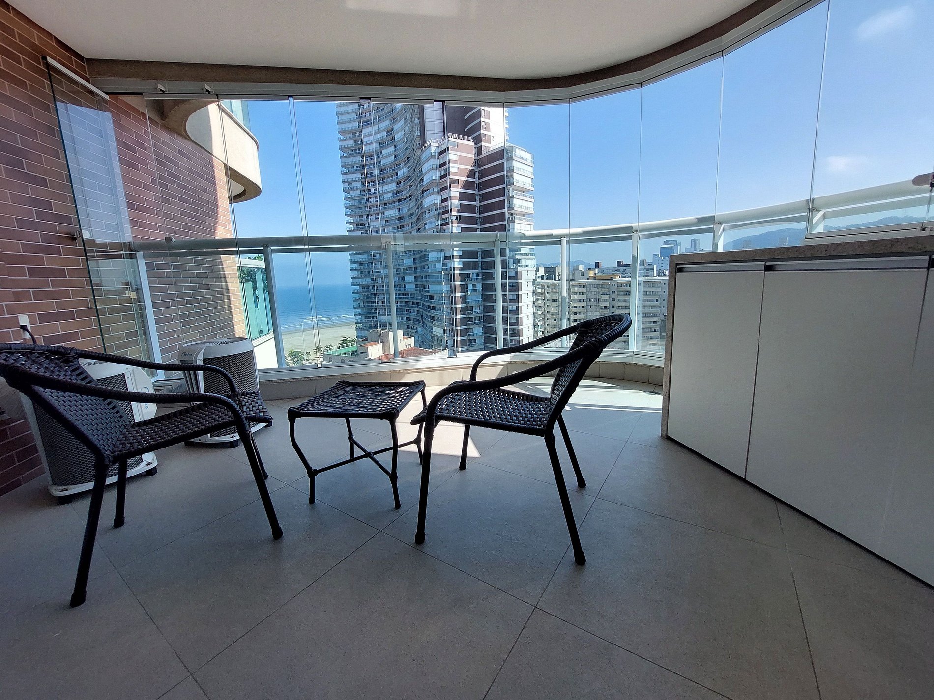 • O apê 1701 possui 2 varandas, sendo 1 com vista mar com envidraçamento e outra com vista cidade que pode ser fechada para garantir a segurança dos pequenos