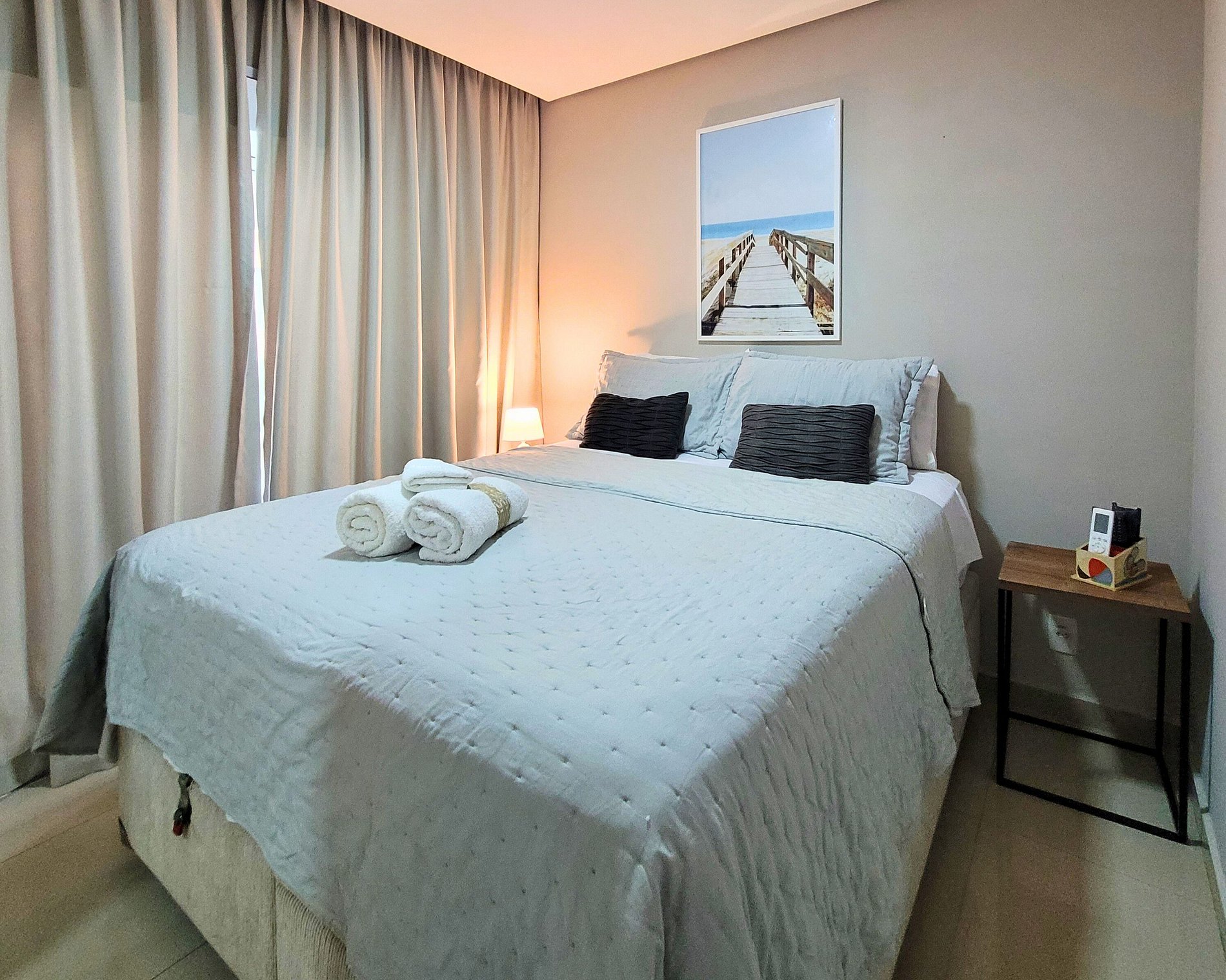 • super aconchegante com uma área total de 69 m², sendo um quarto com cama queen e o segundo quarto com cama de casal.