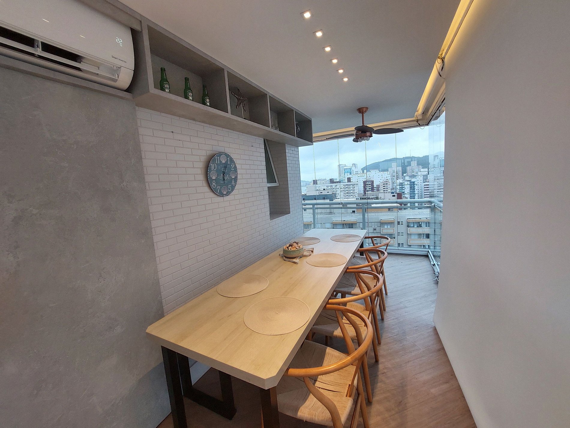 Deslumbrante talvez seja a palavra que resume a experiência no apartamento 1608. Com uma vista panorâmica da cidade, é possível avistar o leste, norte e oeste de Santos, por uma sacada toda envidraçada. Ele possuí 3 quartos, sendo uma suíte além de 2 vagas de garagem!